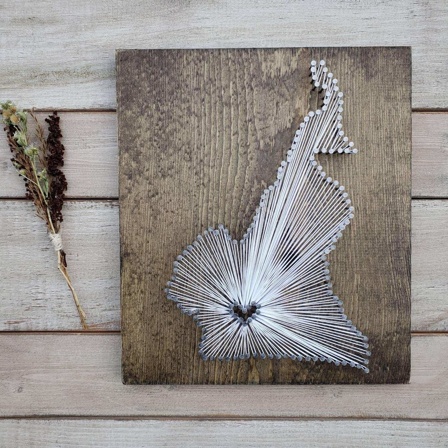 The DIY kit option include everything you need to create your own state string art sign (except a hammer!). The dirty work is already done as the board comes cut and stained with the nail holes already marked out. All you need to do is grab a hammer, pound in the provided nails, and get busy stringing!