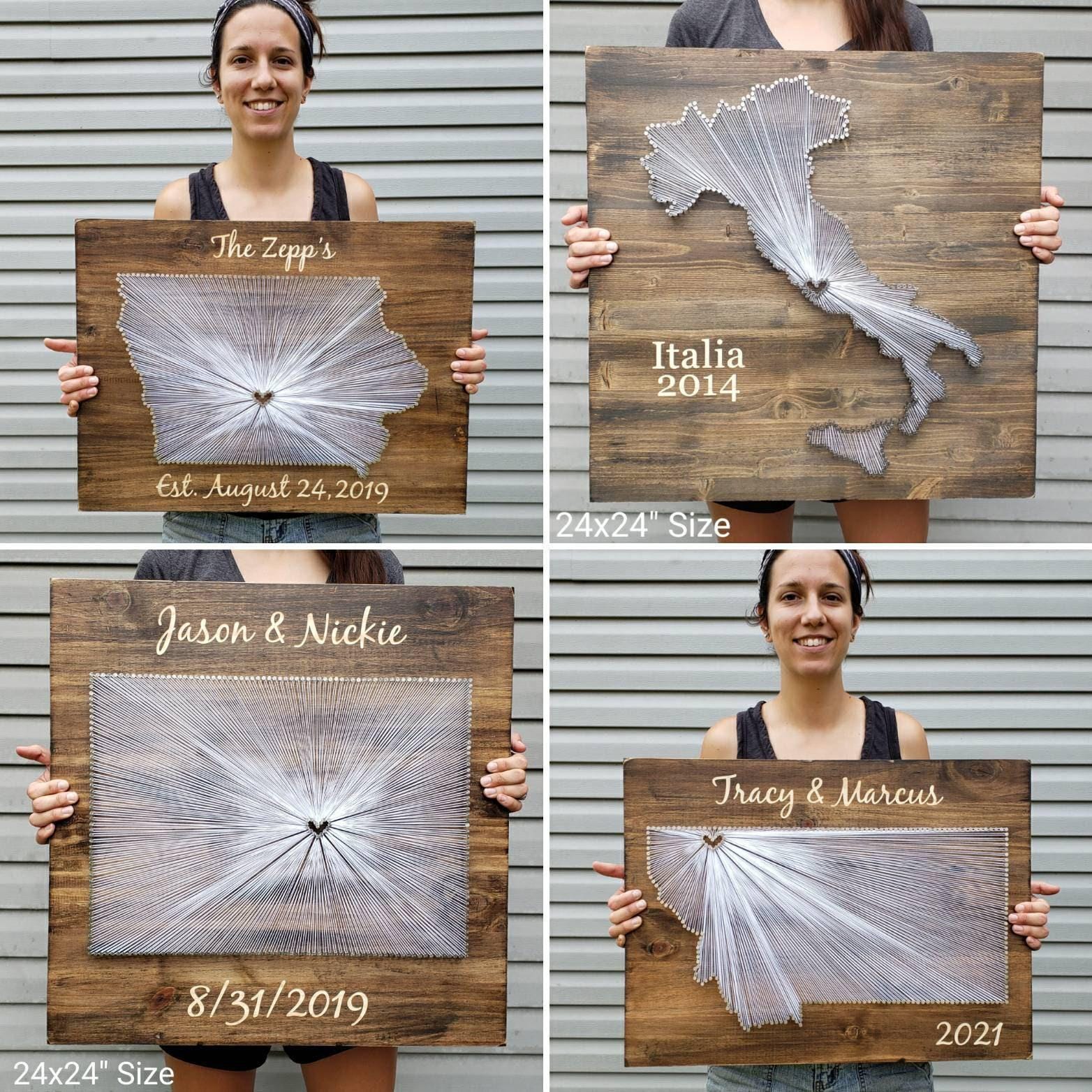 Our string art is the perfect piece of unique & meaningful home décor. The heart goes wherever you would like - where you met your sweetheart or got married, hometown, birthplace, college…the options are endless!