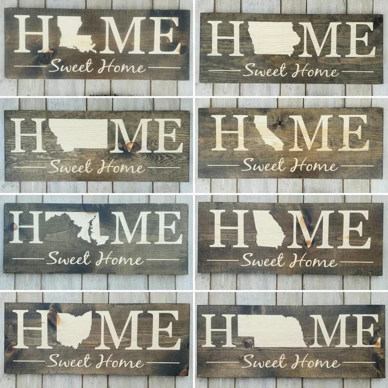 Where do you call home?!? Show off your state pride with our Home Sweet Home Sign. All 50 states are available along with 4 design options or a custom design of your choice!