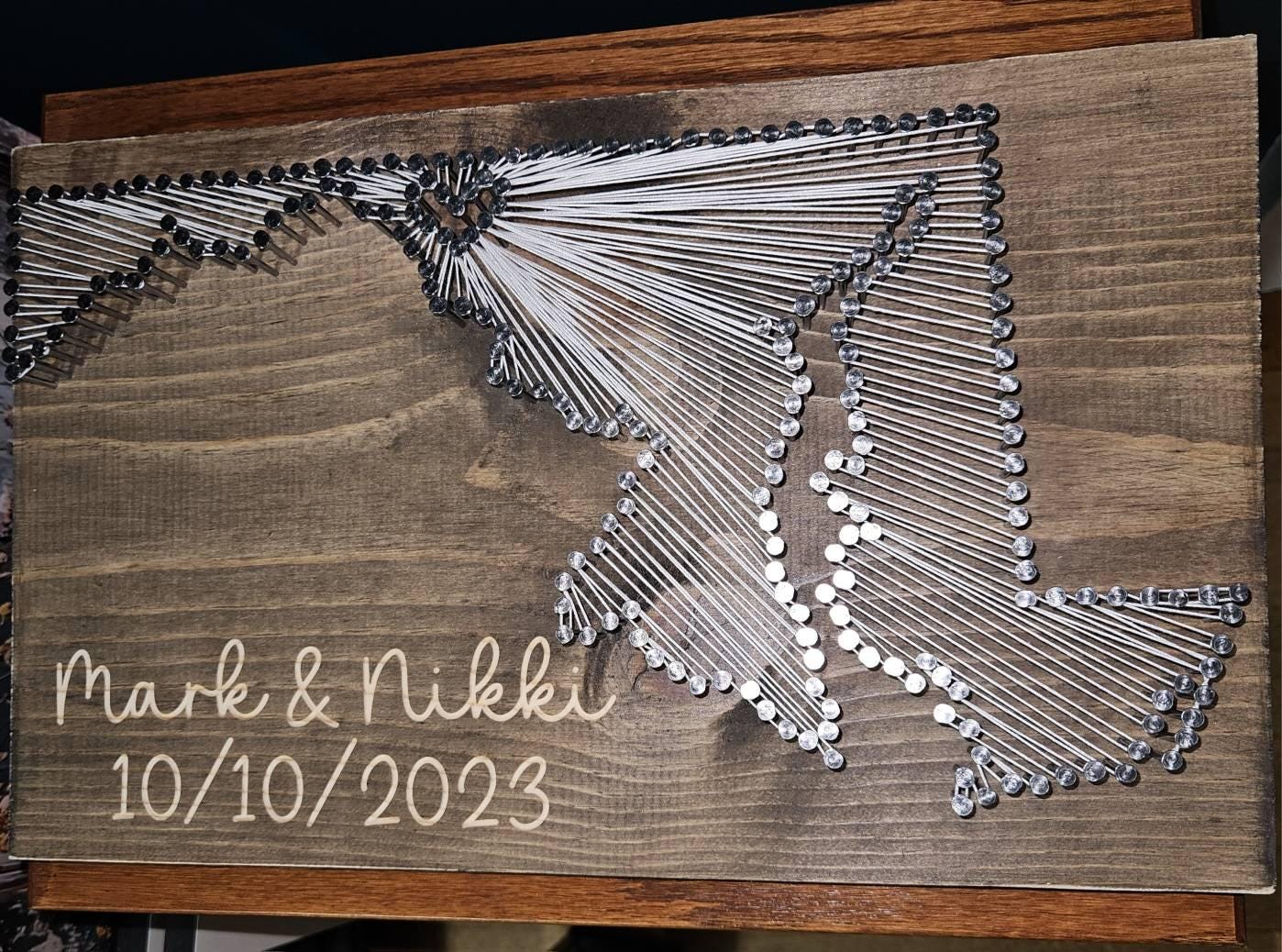 Our string art is the perfect piece of unique & meaningful home décor. The heart goes wherever you would like - where you met your sweetheart or got married, hometown, birthplace, college…the options are endless!