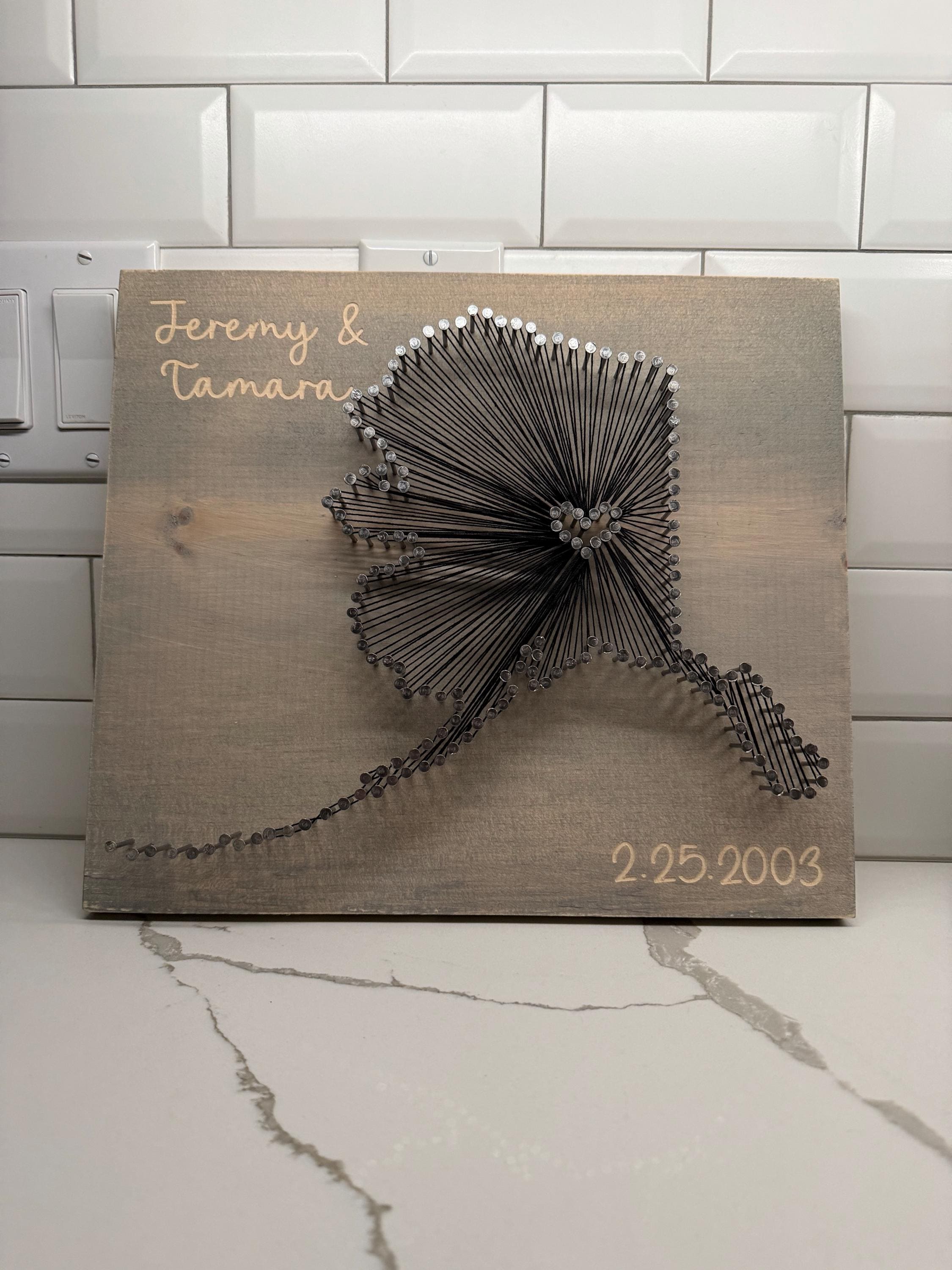Celebrate your milestone with a heartfelt, custom state heart wall decor that turns your cherished memories into timeless keepsakes. Perfect for anniversary celebrations or as a thoughtful 1st anniversary gift, this rustic string art piece highlights the special place where your story began. Handmade with care, it blends the warmth of natural wood with personalized engraving, making it an unforgettable anniversary or wedding gift.