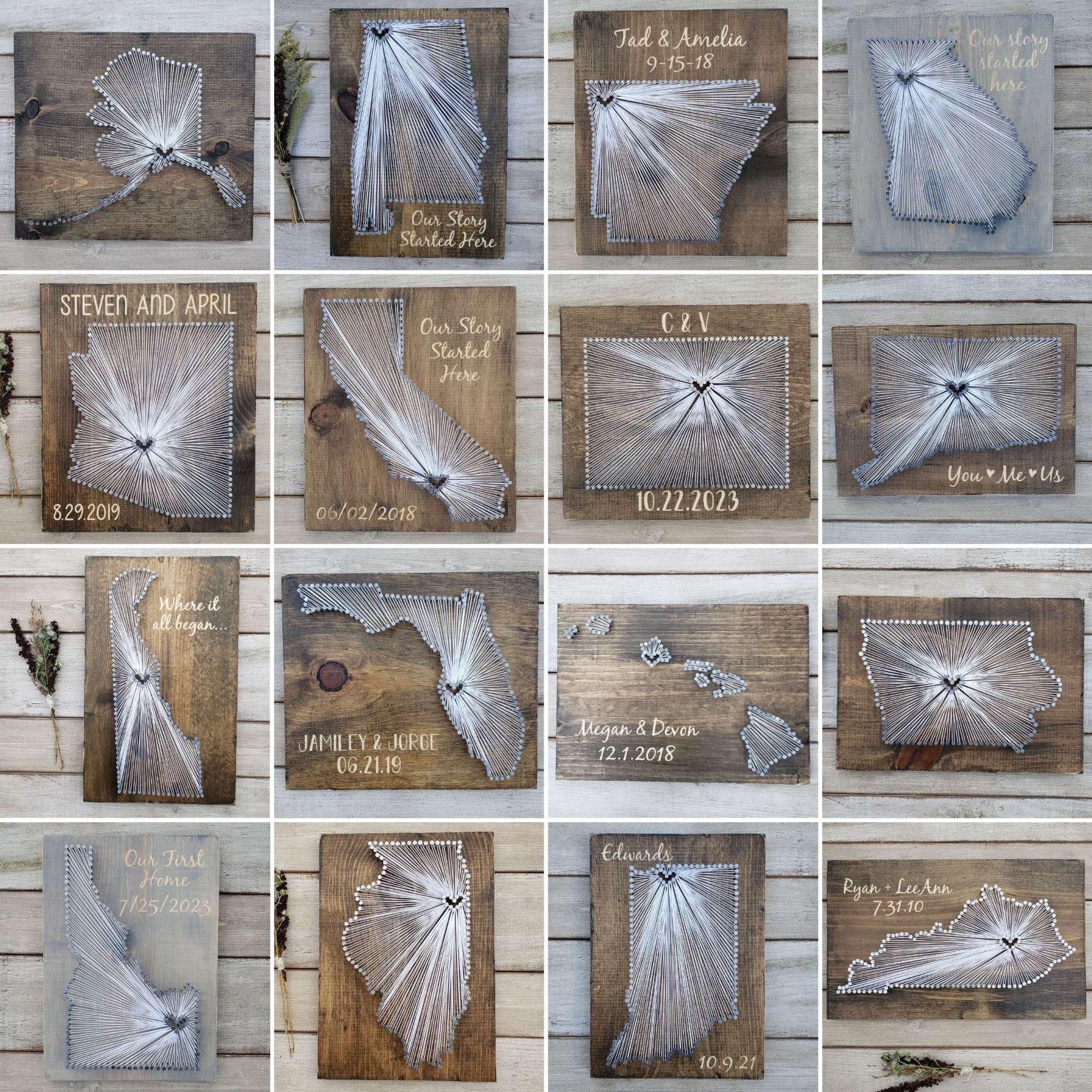 Our best selling state string art is the perfect cotton anniversary gift - a unique & meaningful custom home décor sign. The heart goes wherever you would like - where you met your sweetheart or got married, hometown, birthplace, college…the options are endless!