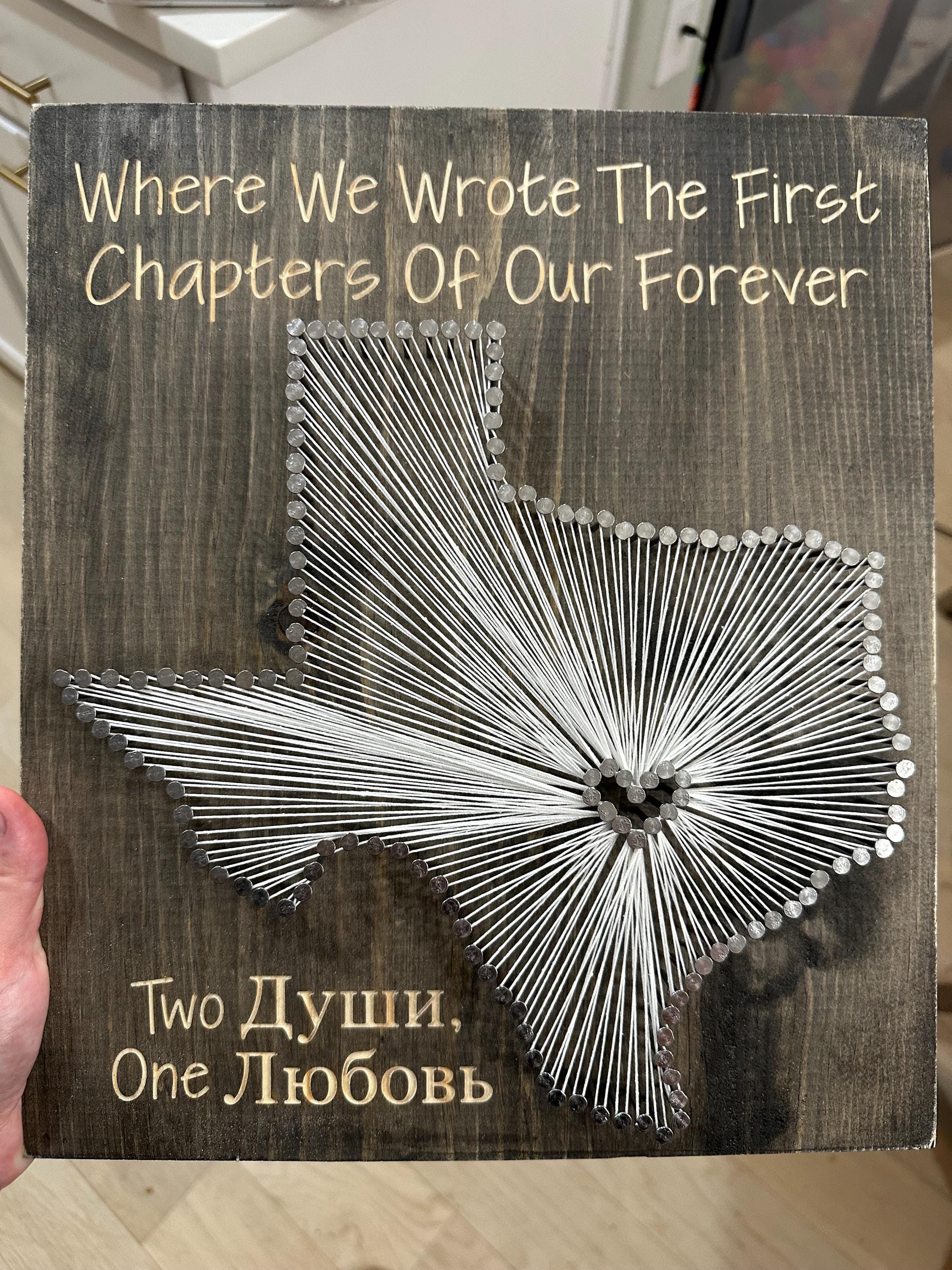 I purchased the heart string board for our 2nd wedding anniversary since it fit with the “cotton” theme and my wife loved it. The seller was quick to confirm details like the font and it was made and shipped out pretty quickly. Thank you so much for this cool and memorable addition to our home decor.