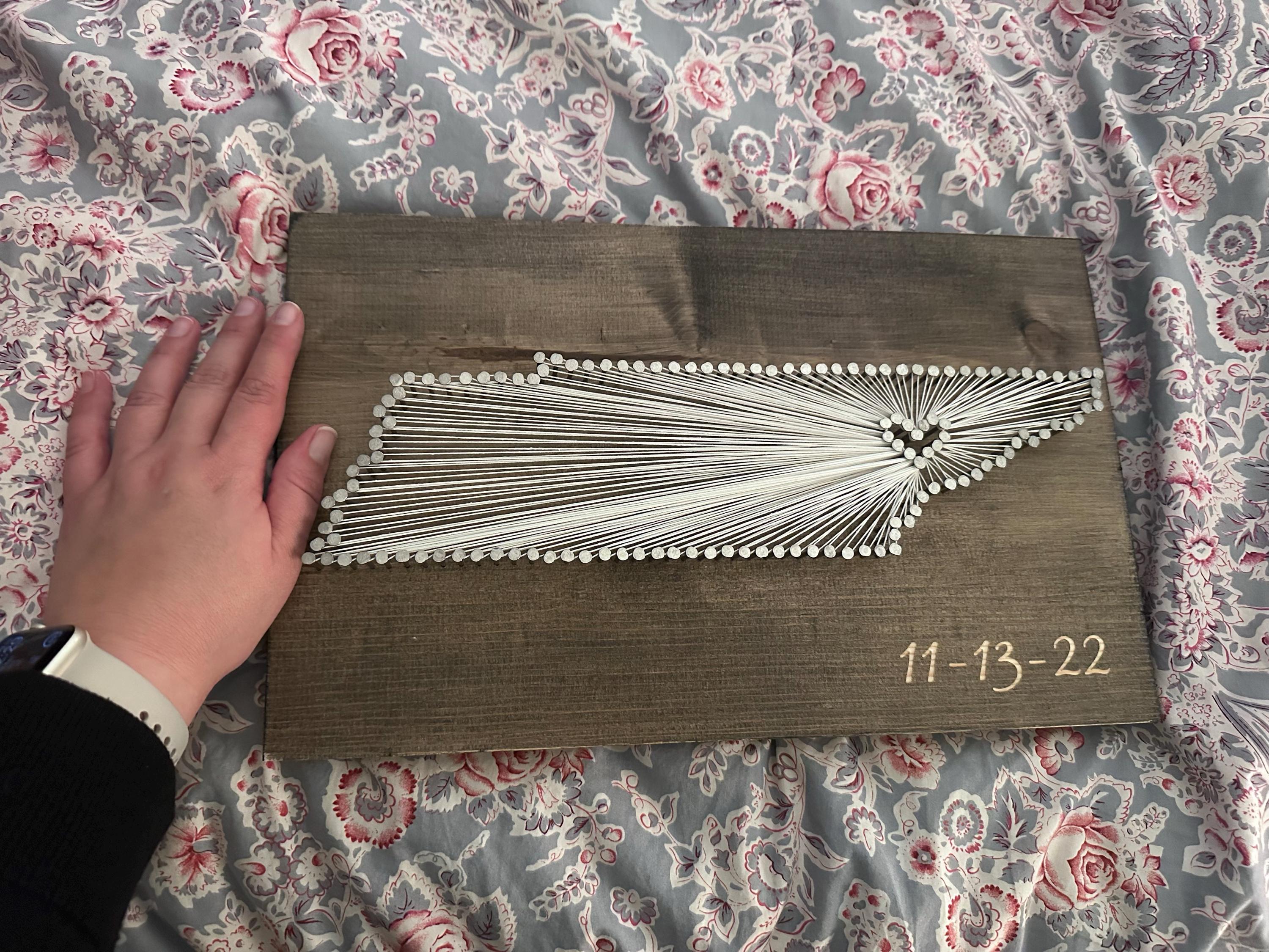 Our string art is the perfect piece of unique & meaningful home décor. The heart goes wherever you would like - where you met your sweetheart or got married, hometown, birthplace, college…the options are endless!