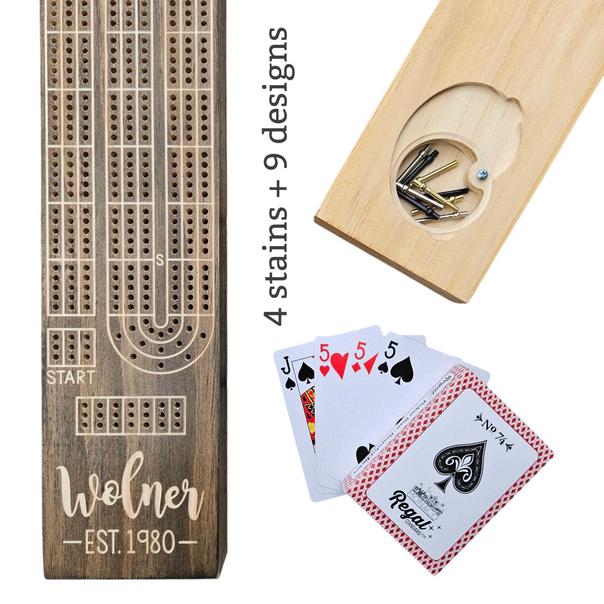 Game night just got better with your very own customized Cribbage board! With NINE engraved designs & FOUR wood stains to choose from you can personalize the final look just the way you like …the options are endless!