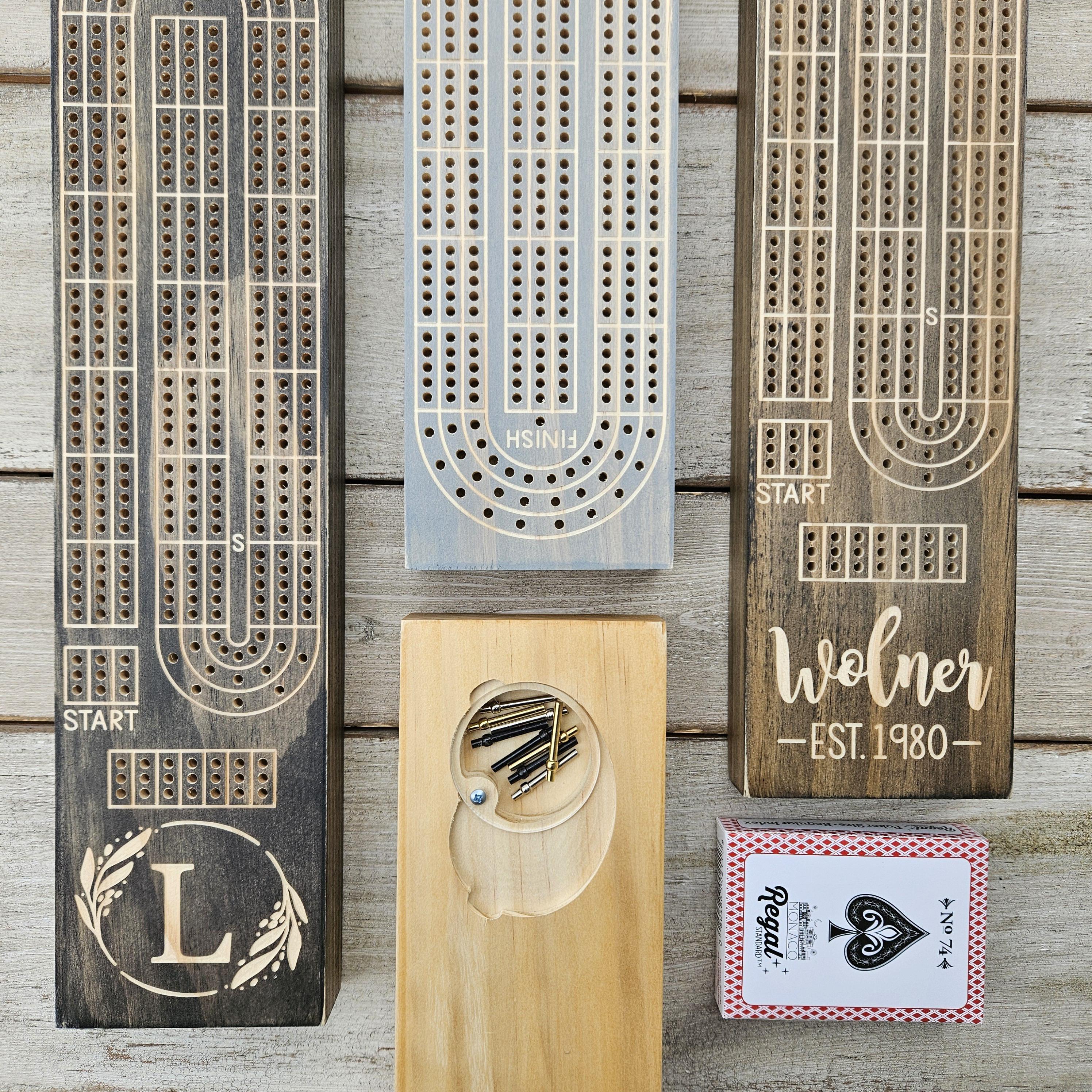 Gather around for an unforgettable family game night with this personalized cribbage board, crafted to bring warmth and connection to your home. Designed as a thoughtful gift for wife, husband, or anyone who cherishes classic card games, this custom cribbage board blends tradition with elegance. With its engraved details and rich wood stains, it celebrates the joy of the cribbage game while making a stunning wood anniversary keepsake.