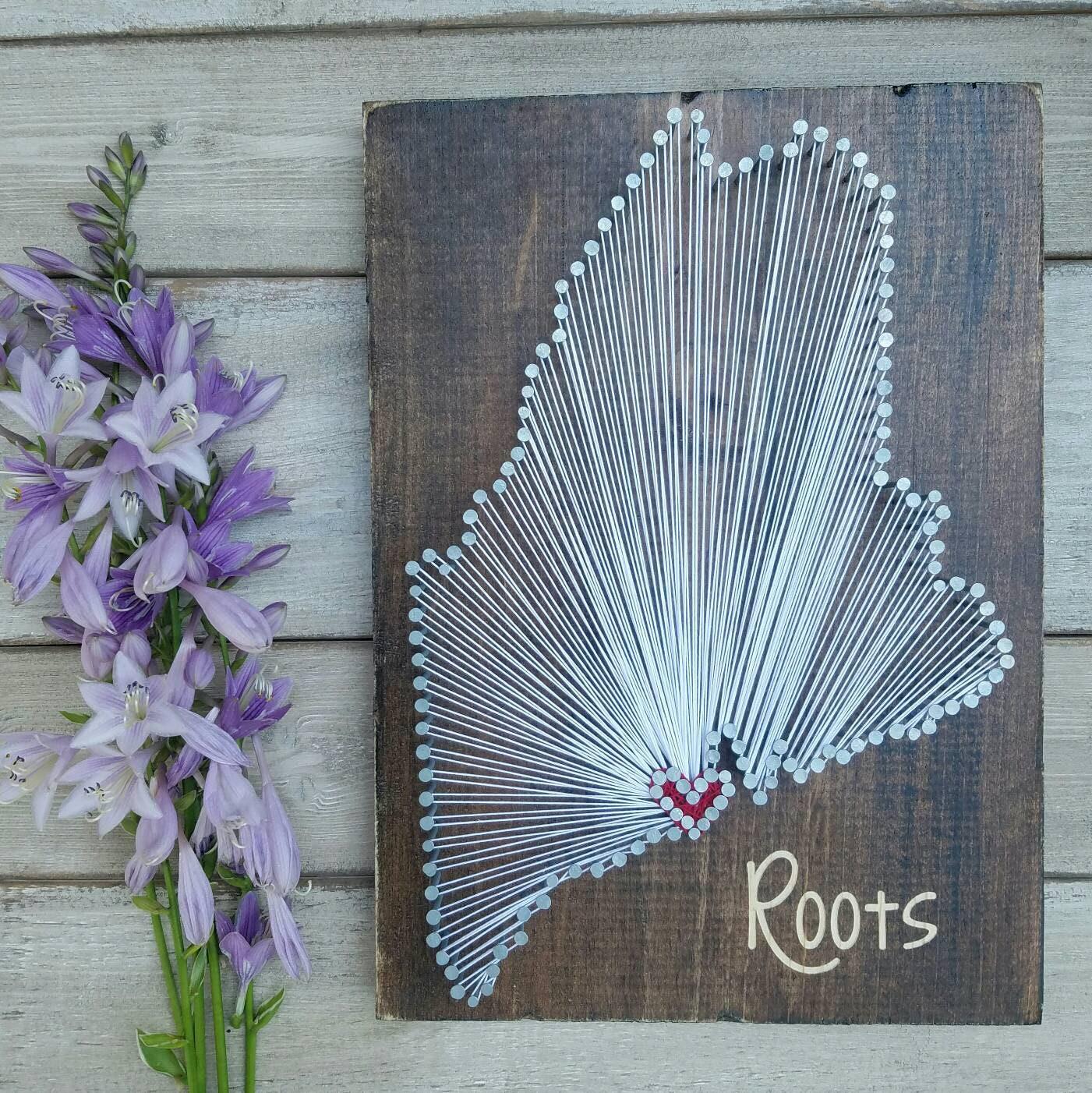 The DIY kit option include everything you need to create your own state string art sign (except a hammer!). The dirty work is already done as the board comes cut and stained with the nail holes already marked out. All you need to do is grab a hammer, pound in the provided nails, and get busy stringing!