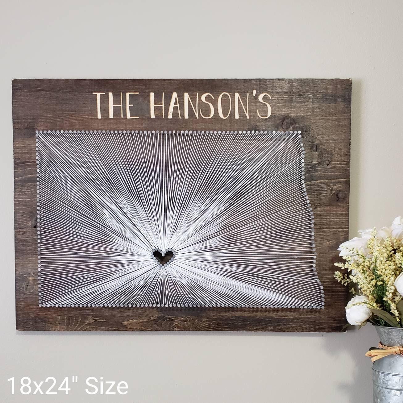 Celebrate your cherished memories with this beautifully handcrafted North Dakota string art, designed to bring a warm touch of North Dakota home decor to any space. Whether commemorating a special place or gifting a meaningful custom state heart piece, this artwork captures heartfelt moments with rustic charm and personalized detail. Each creation is a unique blend of natural wood grain and delicate string craftsmanship, perfect as a rustic wedding gift or an engagement present.