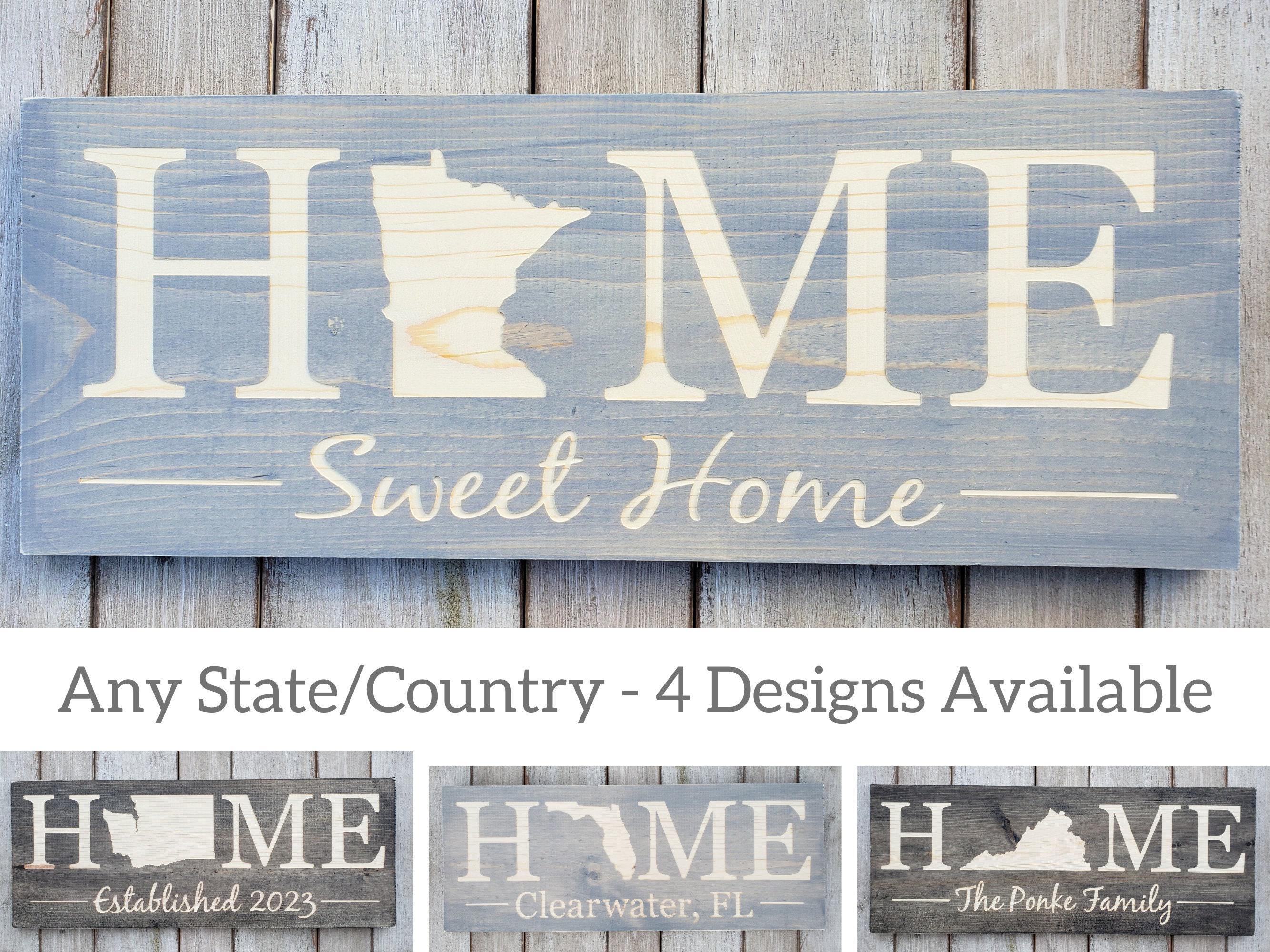 Where do you call home?!? Show off your state pride with our Home Sweet Home Sign. All 50 states are available along with 4 design options or a custom design of your choice!