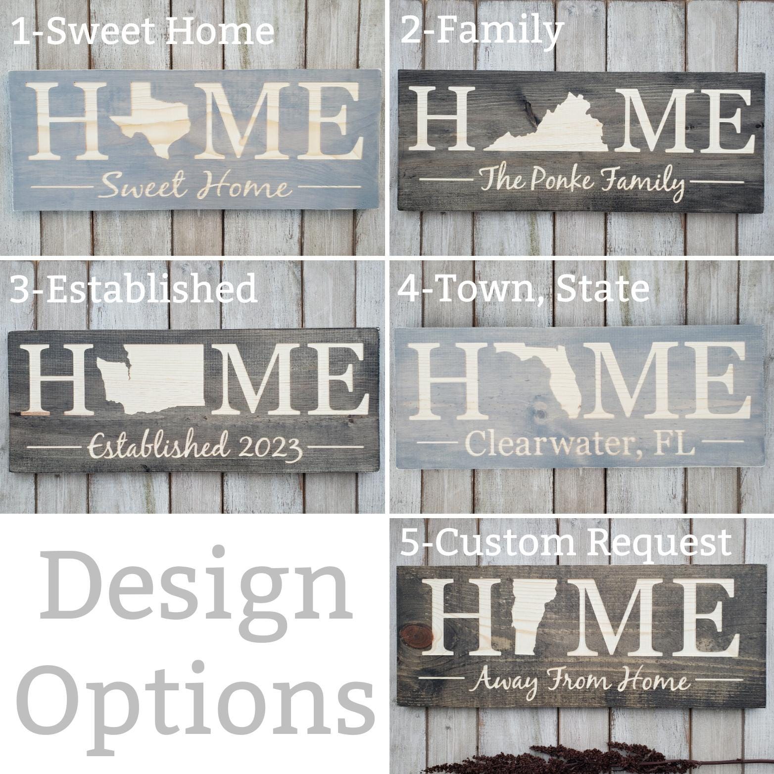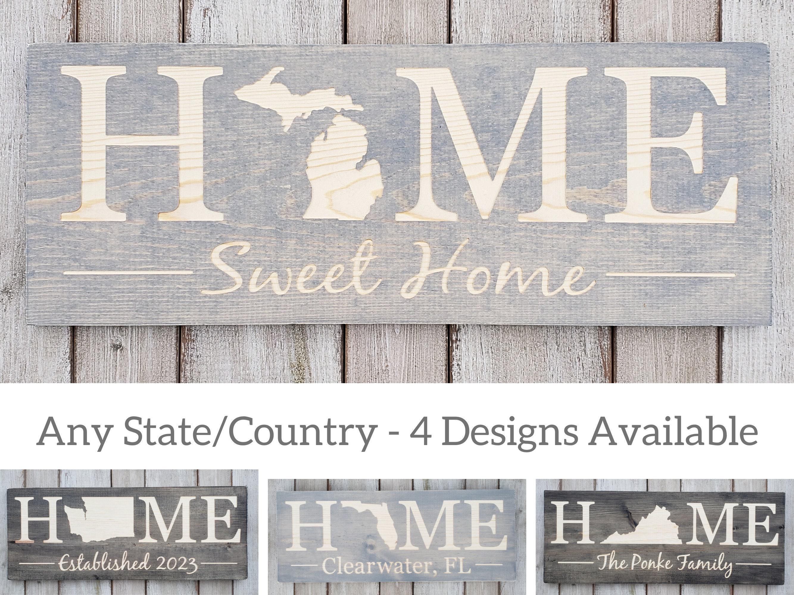 Where do you call home?!? Show off your state pride with our Home Sweet Home Sign. All 50 states are available along with 4 design options or a custom design of your choice!