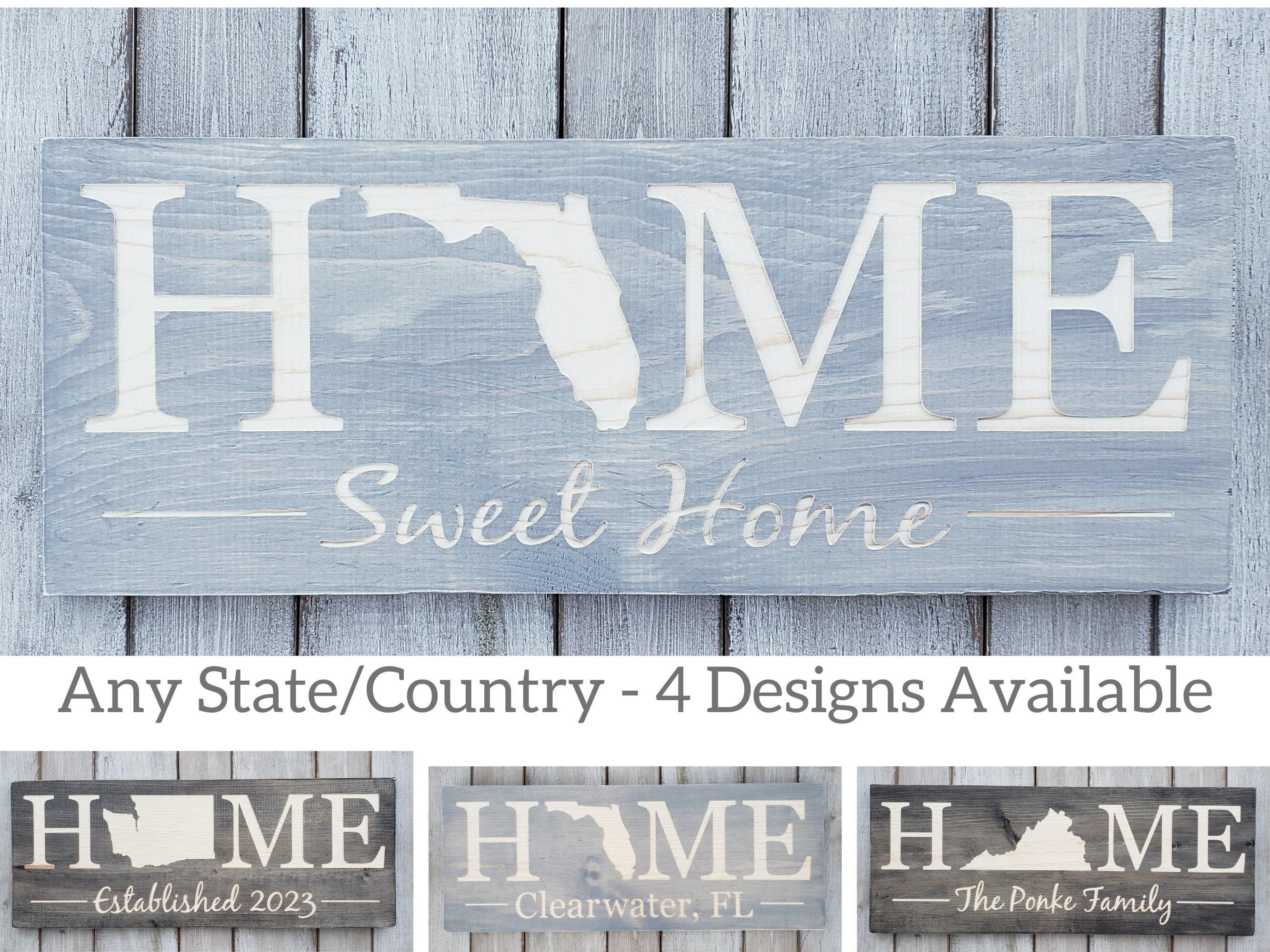Where do you call home?!? Show off your state pride with our Home Sweet Home Sign. All 50 states are available along with 4 design options or a custom design of your choice!