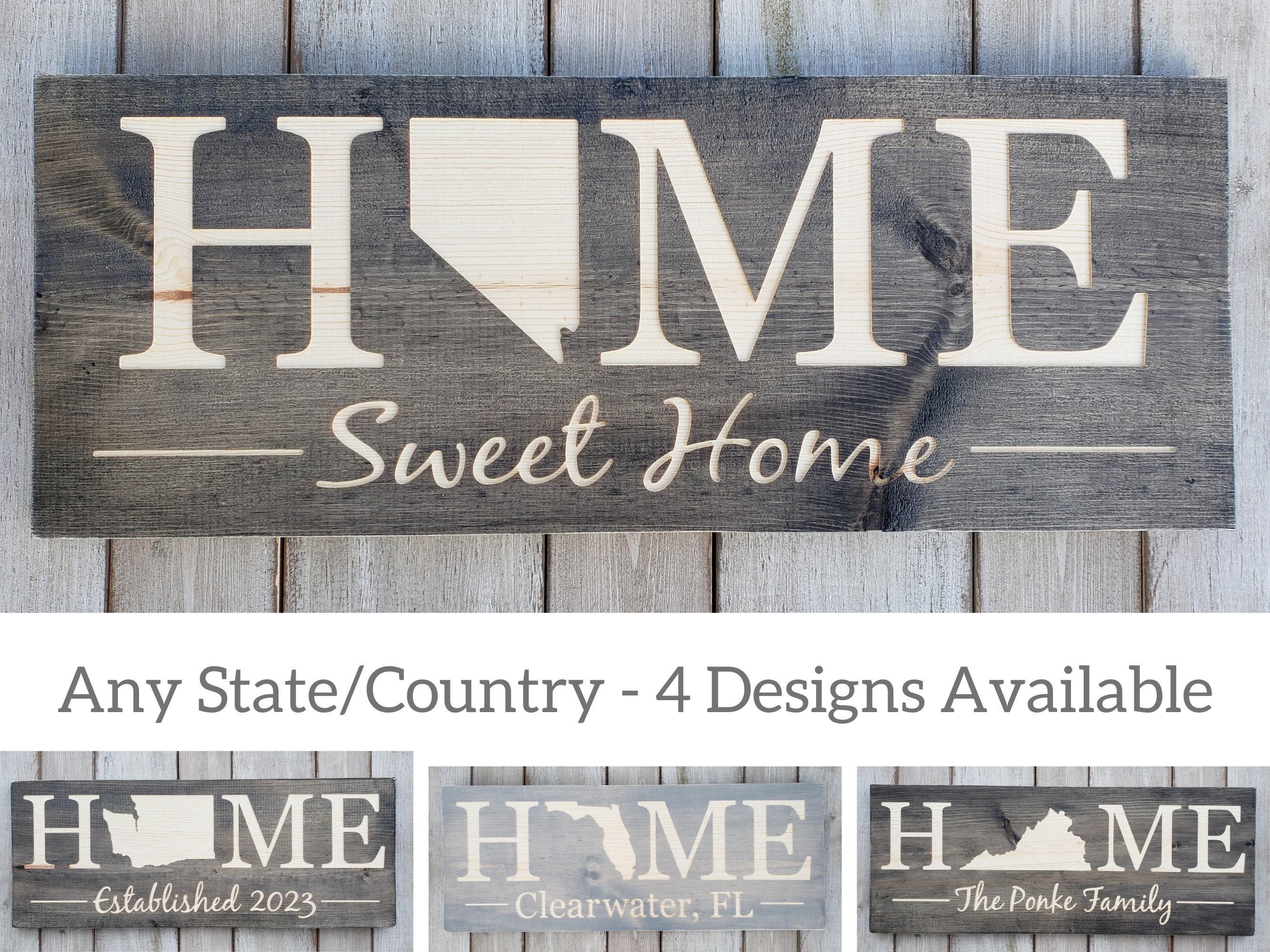 Where do you call home?!? Show off your state pride with our Home Sweet Home Sign. All 50 states are available along with 4 design options or a custom design of your choice!