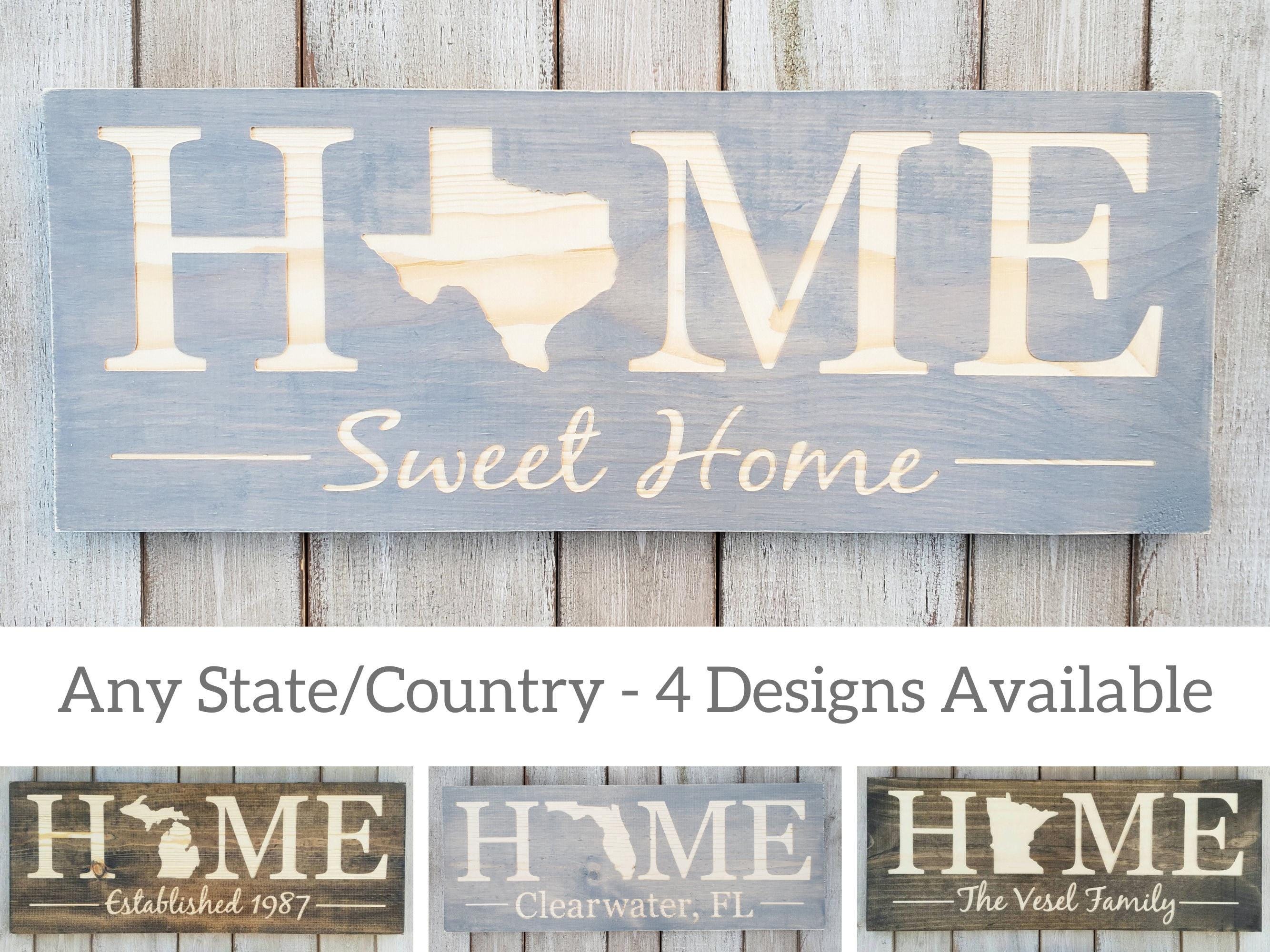 Where do you call home?!? Show off your state pride with our Home Sweet Home Sign. All 50 states are available along with 4 design options or a custom design of your choice!