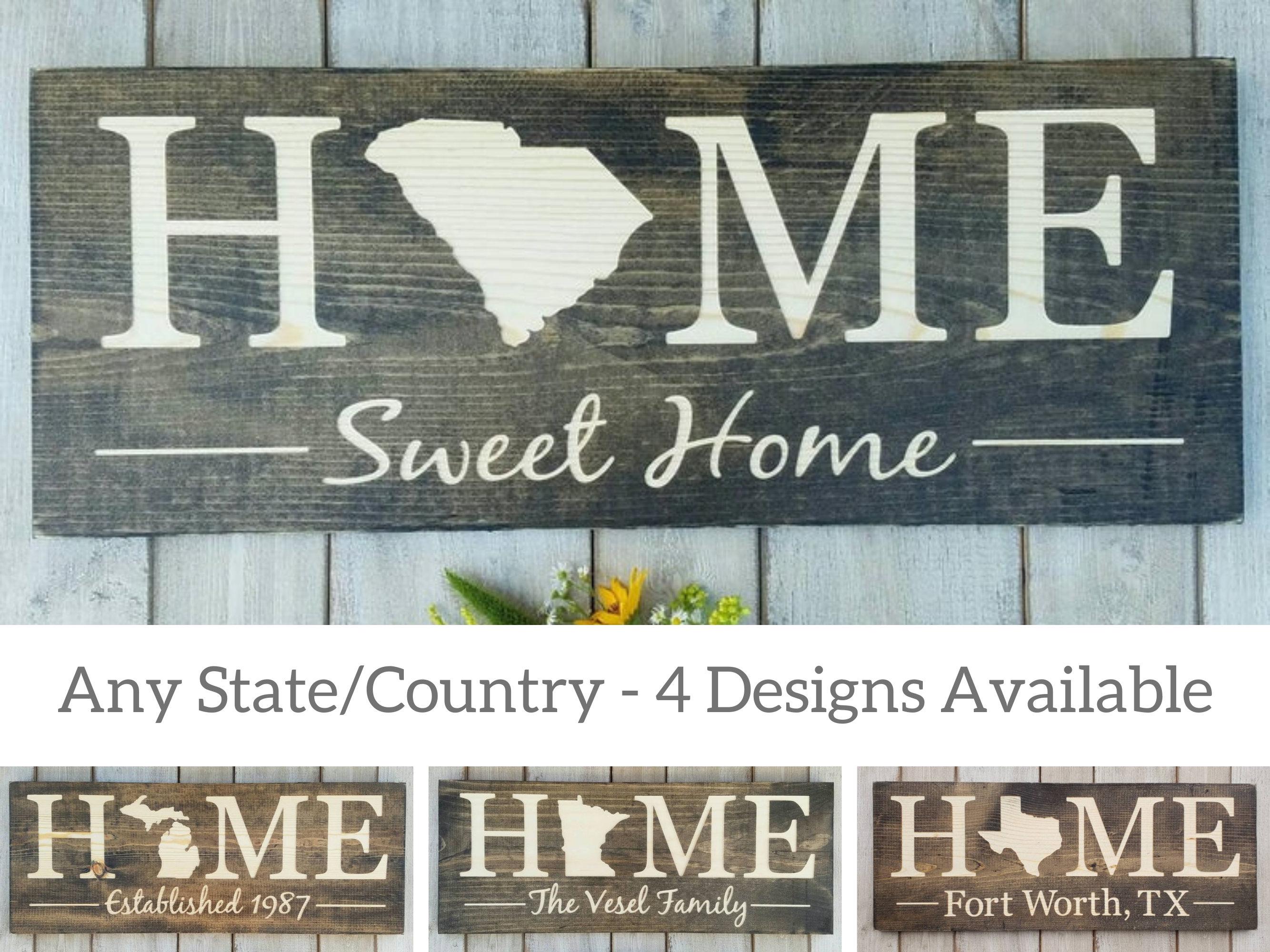 Where do you call home?!? Show off your state pride with our Home Sweet Home Sign. All 50 states are available along with 4 design options or a custom design of your choice!