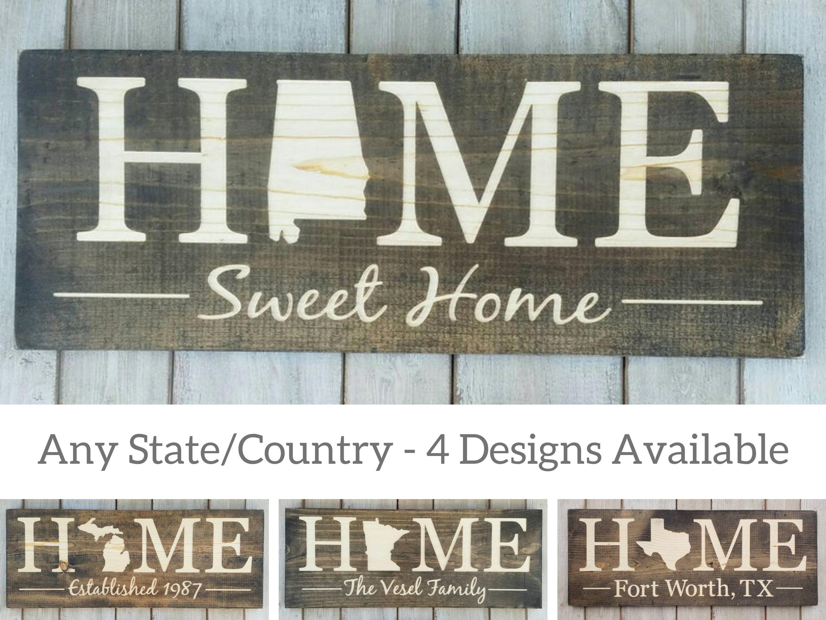 Where do you call home?!? Show off your state pride with our Home Sweet Home Sign. All 50 states are available along with 4 design options or a custom design of your choice!