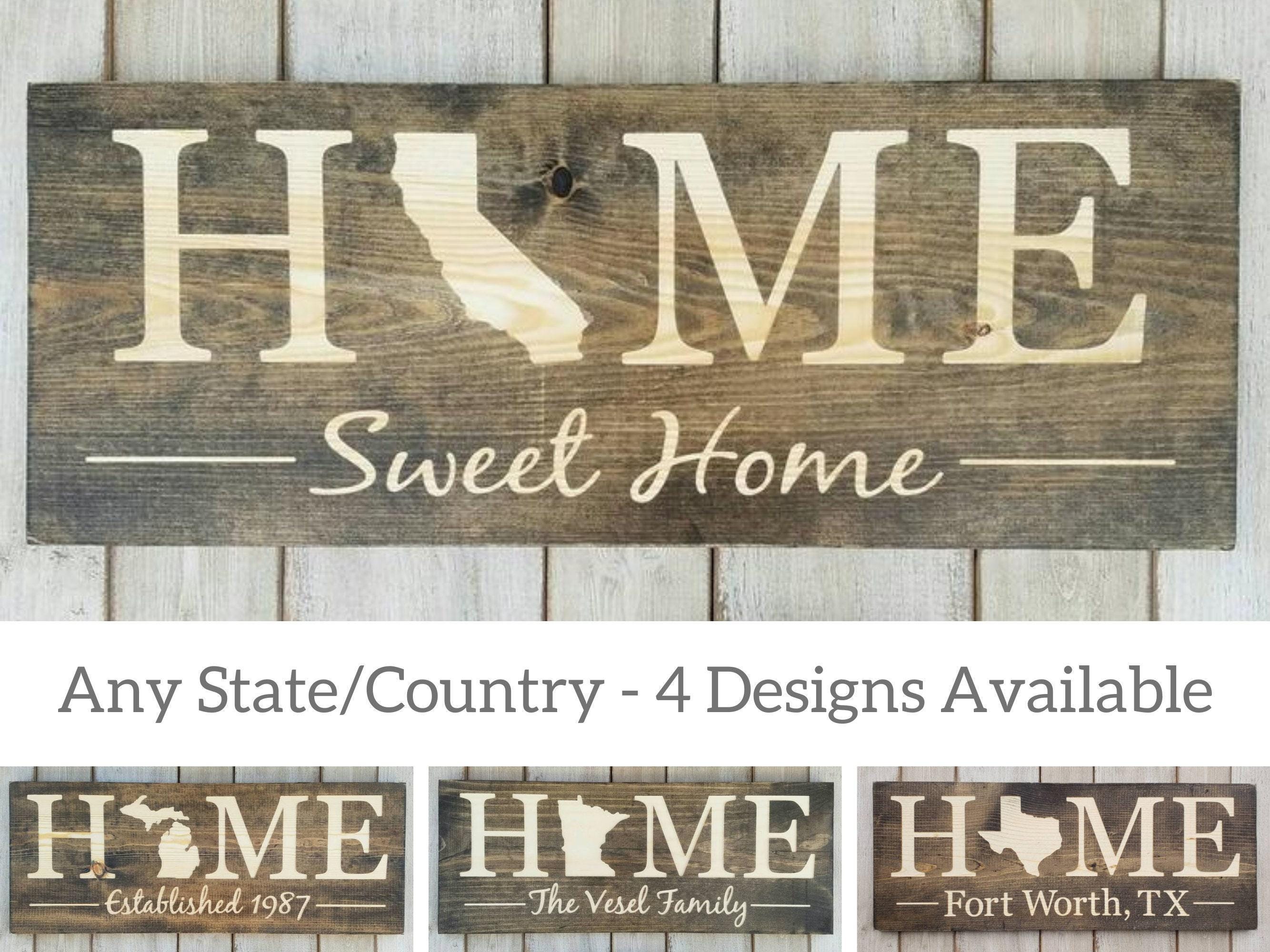 Where do you call home?!? Show off your state pride with our Home Sweet Home Sign. All 50 states are available along with 4 design options or a custom design of your choice!