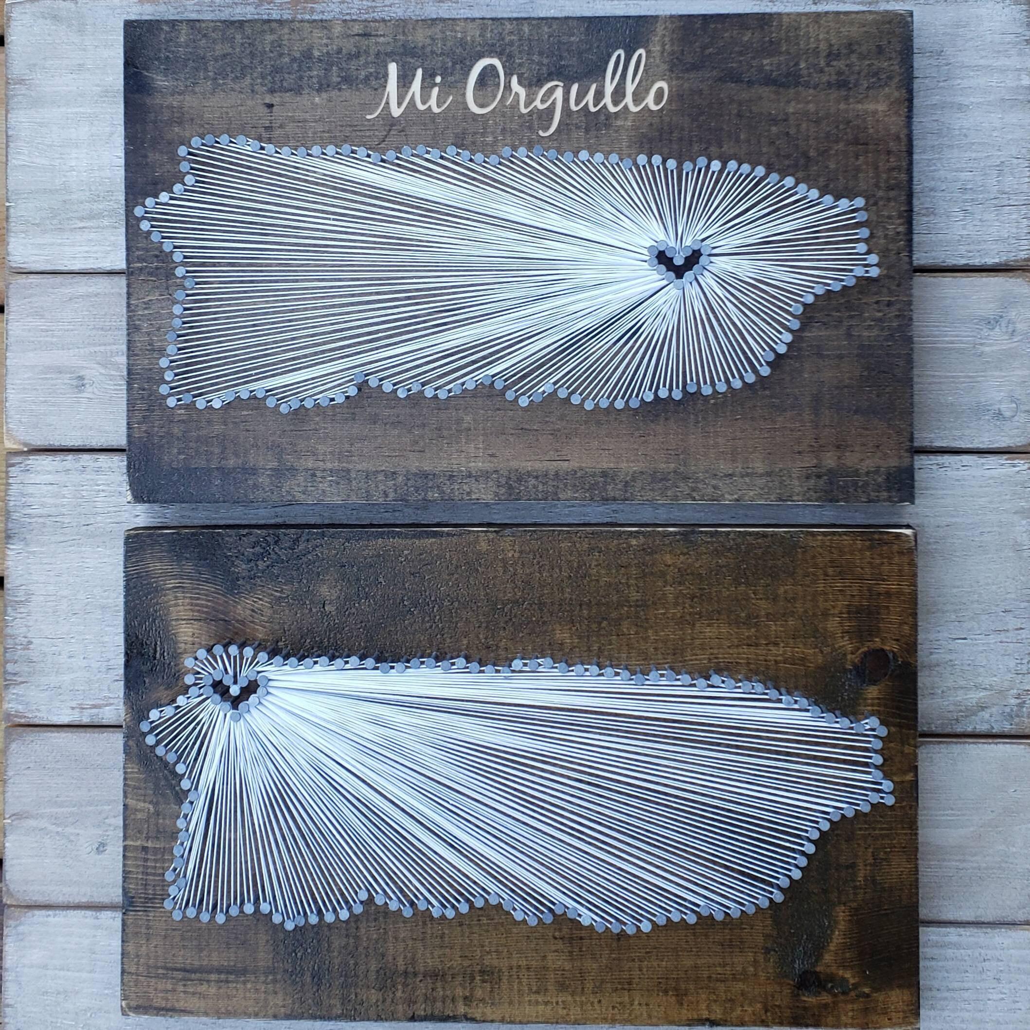 The DIY kit option include everything you need to create your own state string art sign (except a hammer!). The dirty work is already done as the board comes cut and stained with the nail holes already marked out. All you need to do is grab a hammer, pound in the provided nails, and get busy stringing!