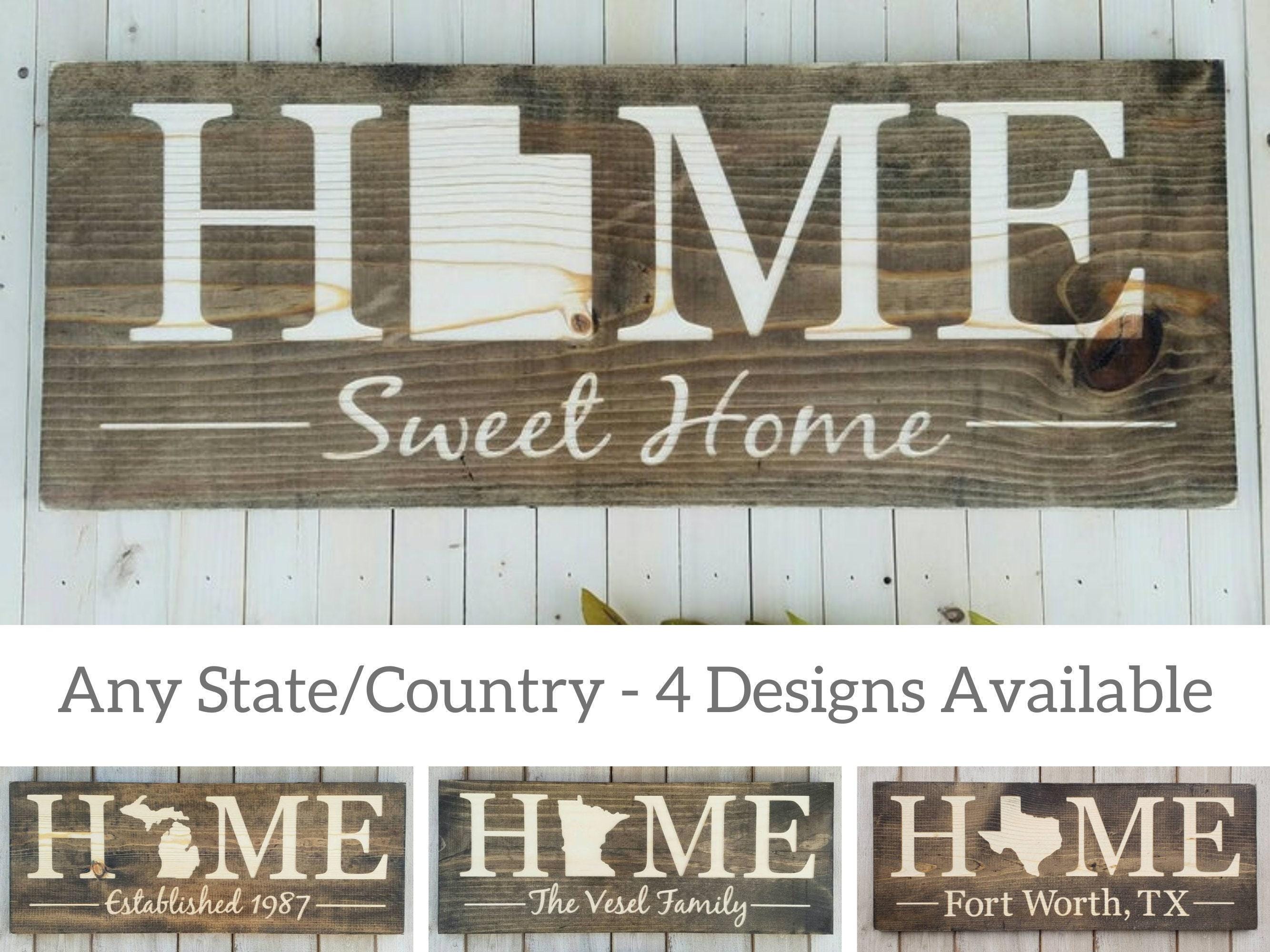 Where do you call home?!? Show off your state pride with our Home Sweet Home Sign. All 50 states are available along with 4 design options or a custom design of your choice!
