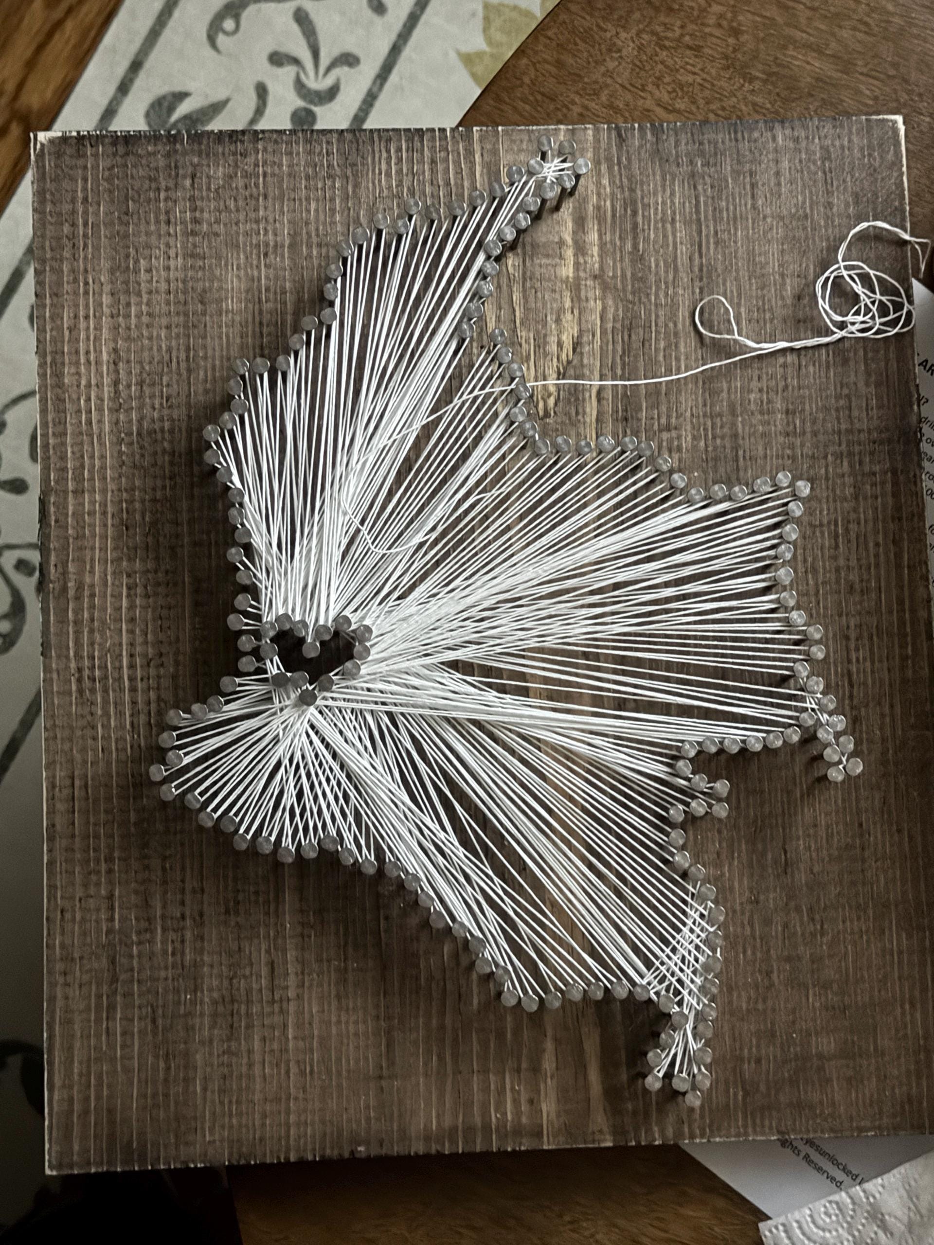 The DIY kit option include everything you need to create your own state string art sign (except a hammer!). The dirty work is already done as the board comes cut and stained with the nail holes already marked out. All you need to do is grab a hammer, pound in the provided nails, and get busy stringing!