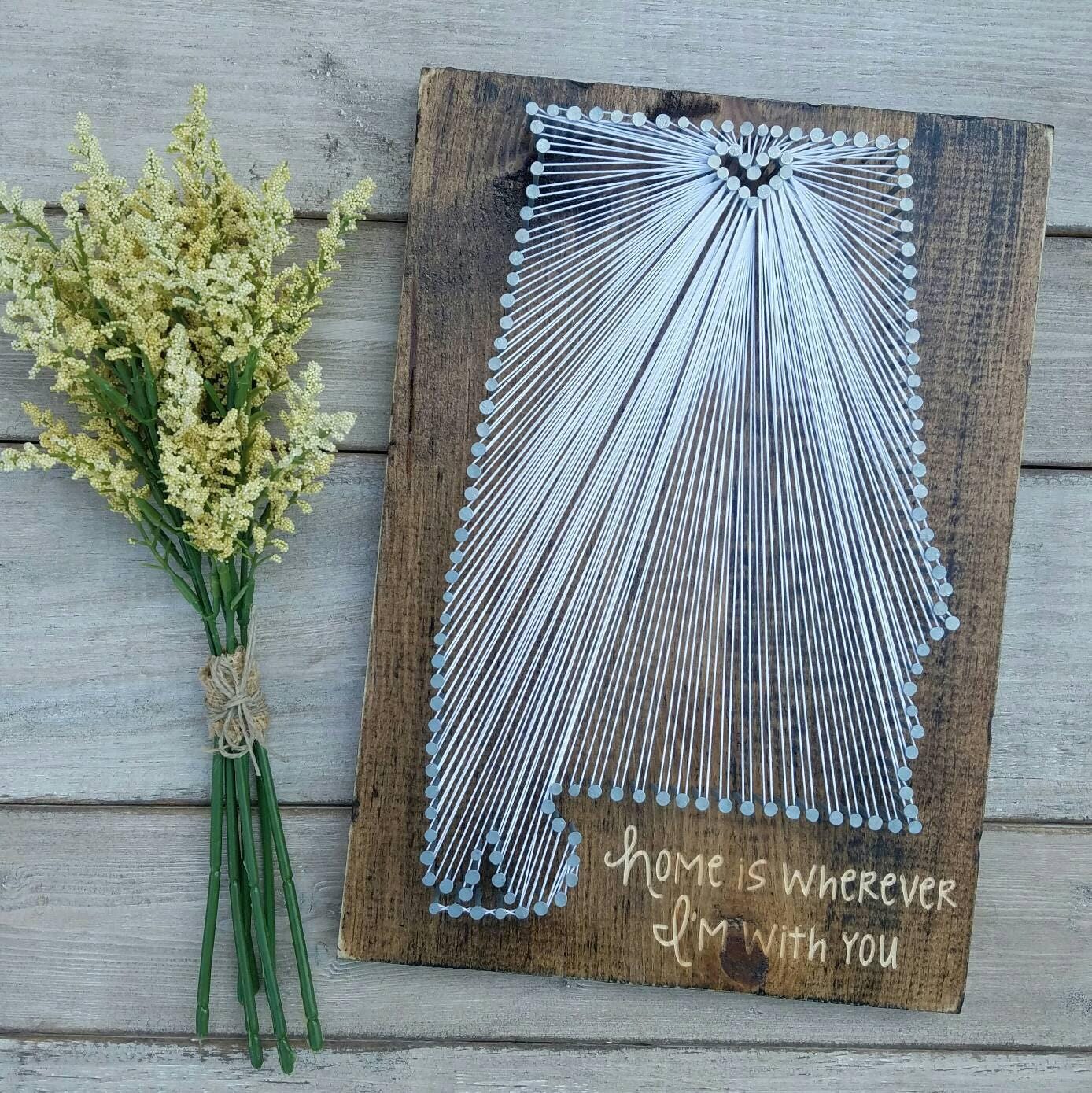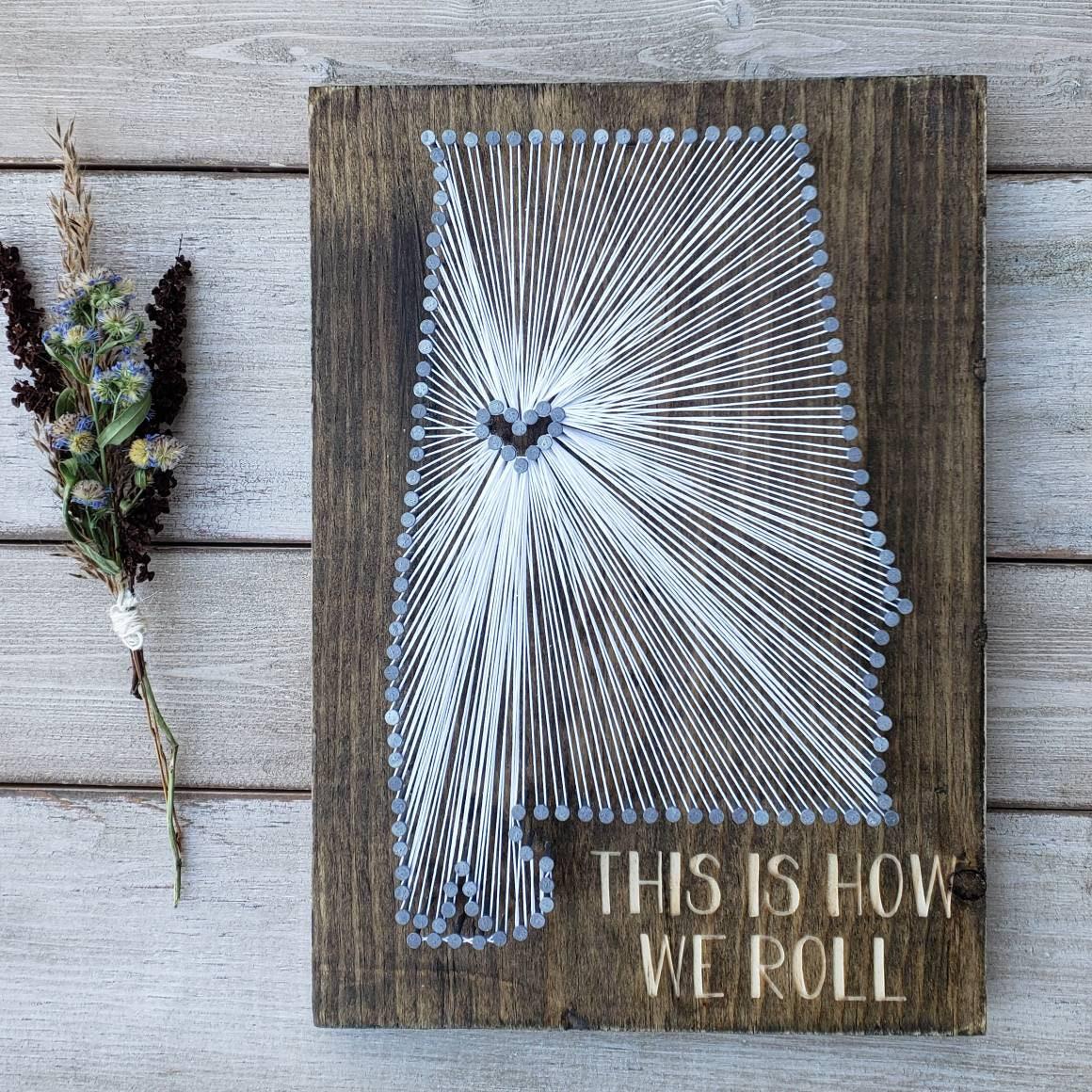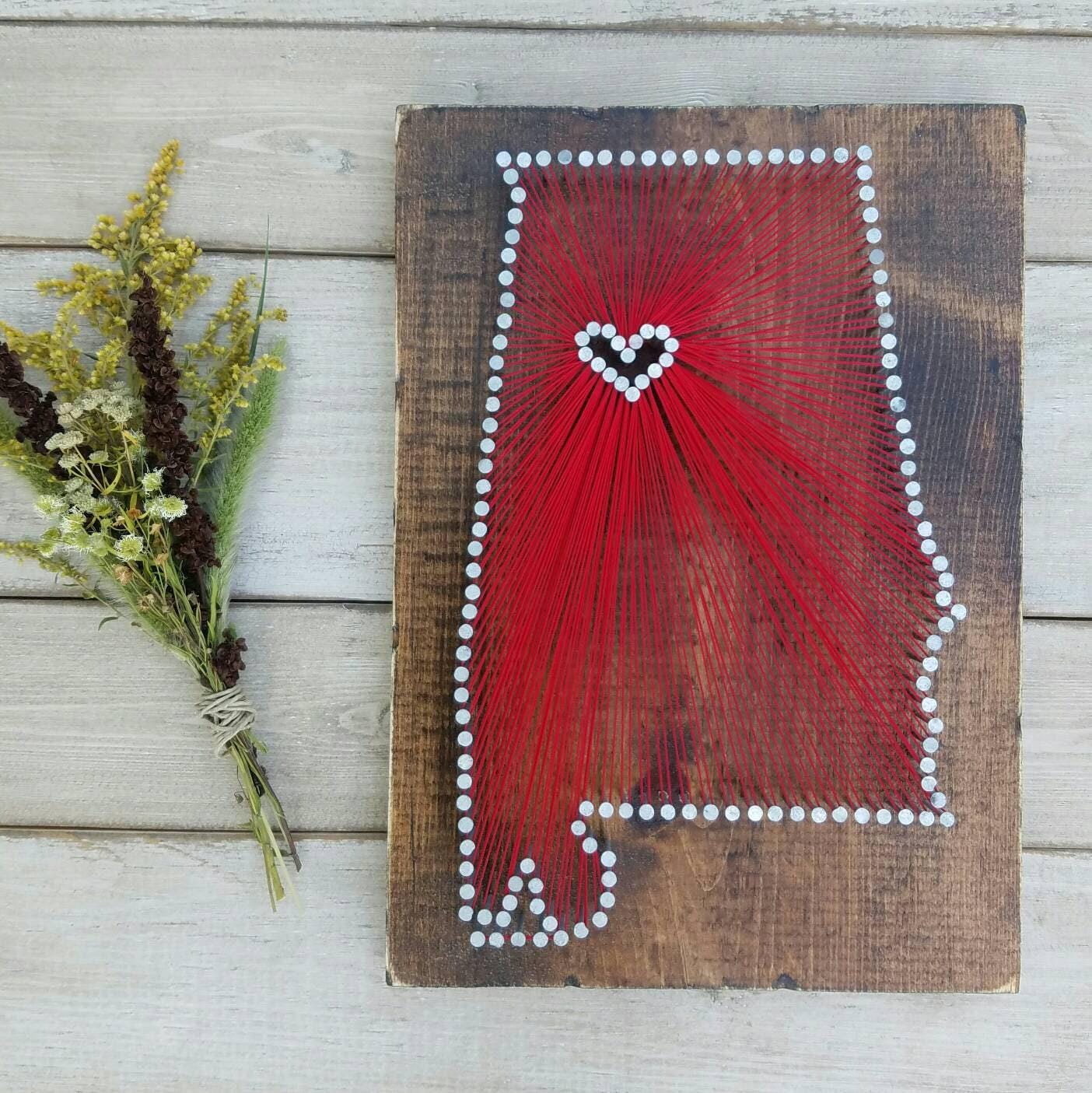 Alabama String Art, Alabama State Map, Alabama State Sign, Alabama Print, Alabama Wall Art, Rustic Alabama Gifts, 9x13, 16x24