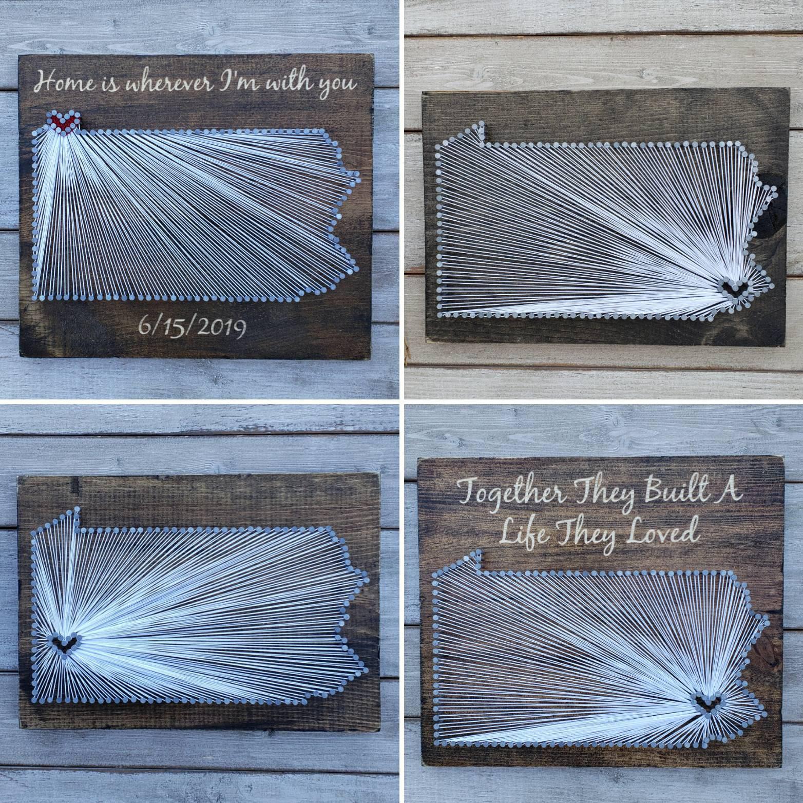 Our string art is the perfect piece of unique & meaningful home décor. The heart goes wherever you would like - where you met your sweetheart or got married, hometown, birthplace, college…the options are endless!