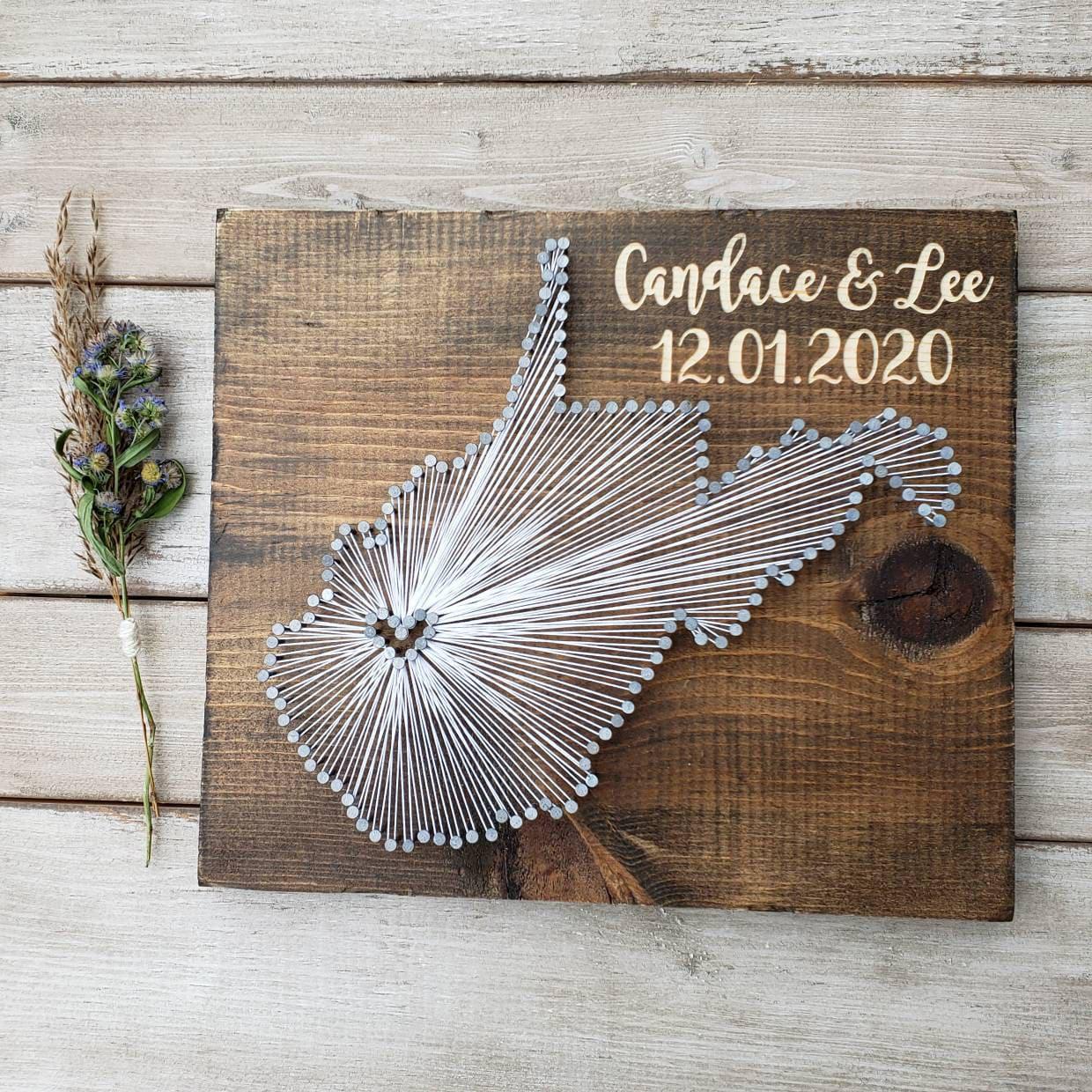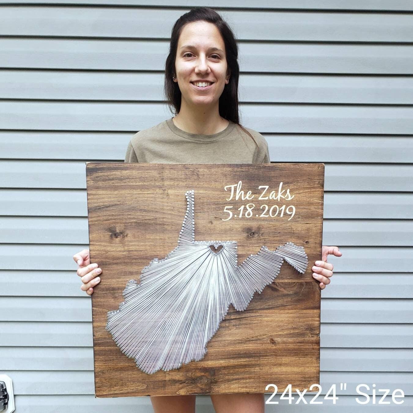 Celebrate your cherished memories with a beautifully crafted piece of West Virginia string art that brings warmth and rustic charm to any space. This unique state string art is thoughtfully designed to highlight your special location, making it a perfect rustic wedding gift or engagement gift idea. Handmade with care, each piece blends the natural beauty of wood with intricate nail and string art to create a crafted memory art that tells your story.