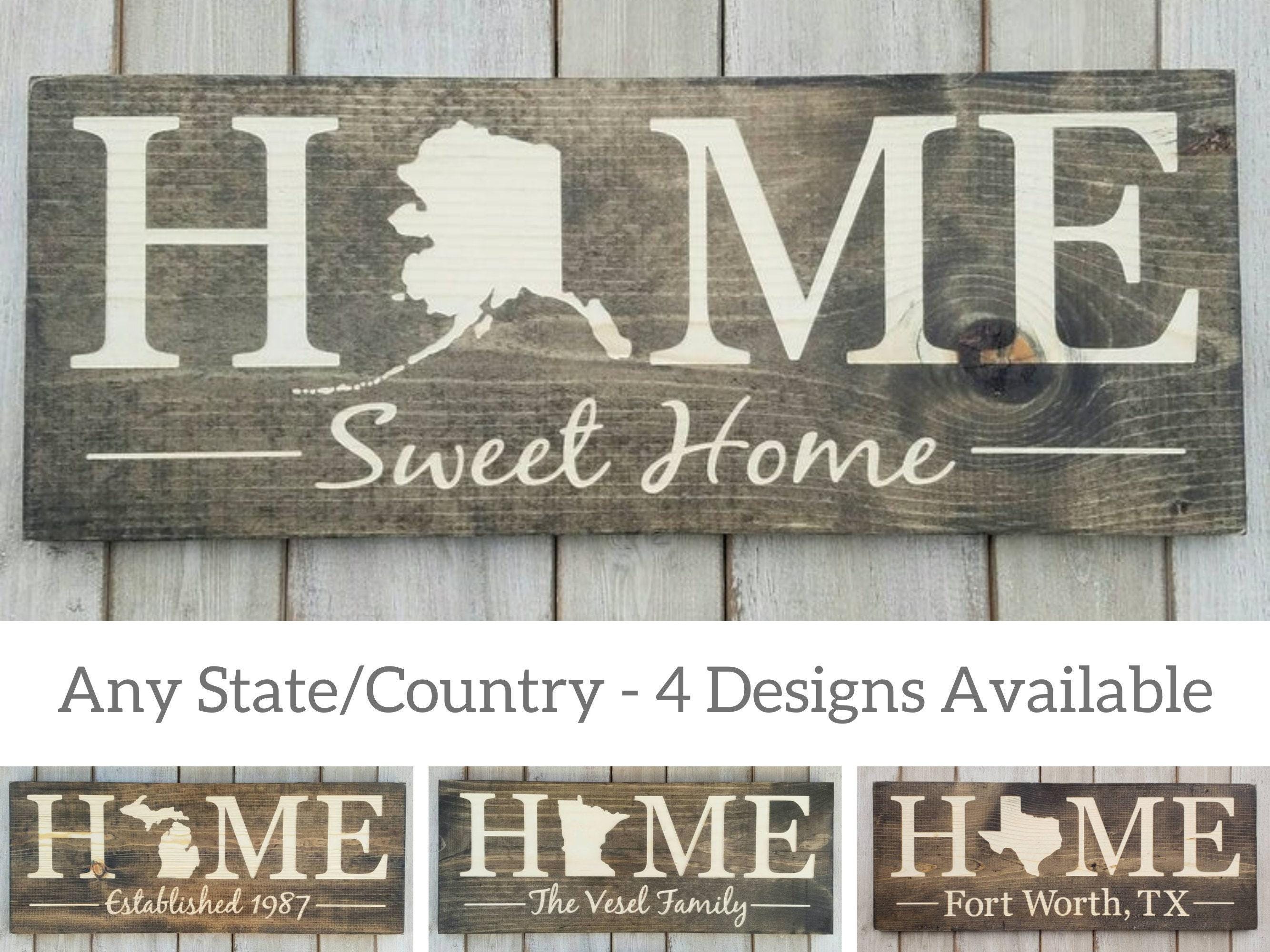 Where do you call home?!? Show off your state pride with our Home Sweet Home Sign. All 50 states are available along with 4 design options or a custom design of your choice!