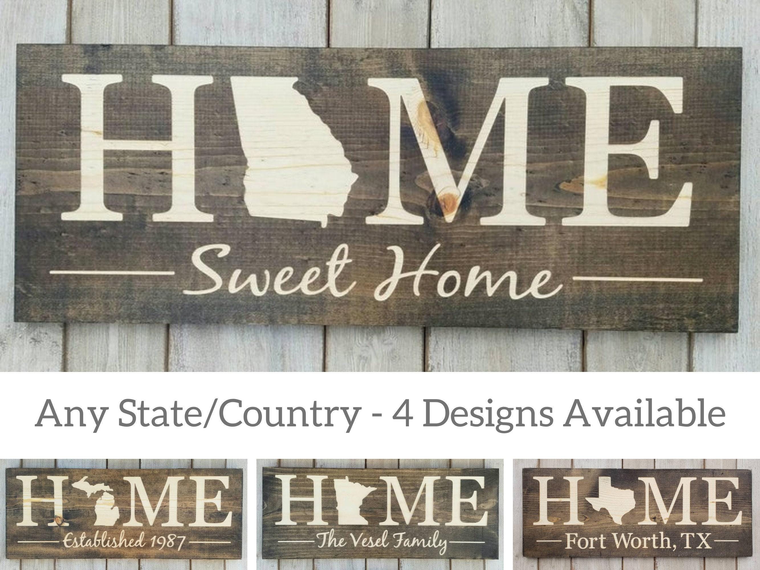 Where do you call home?!? Show off your state pride with our Home Sweet Home Sign. All 50 states are available along with 4 design options or a custom design of your choice!