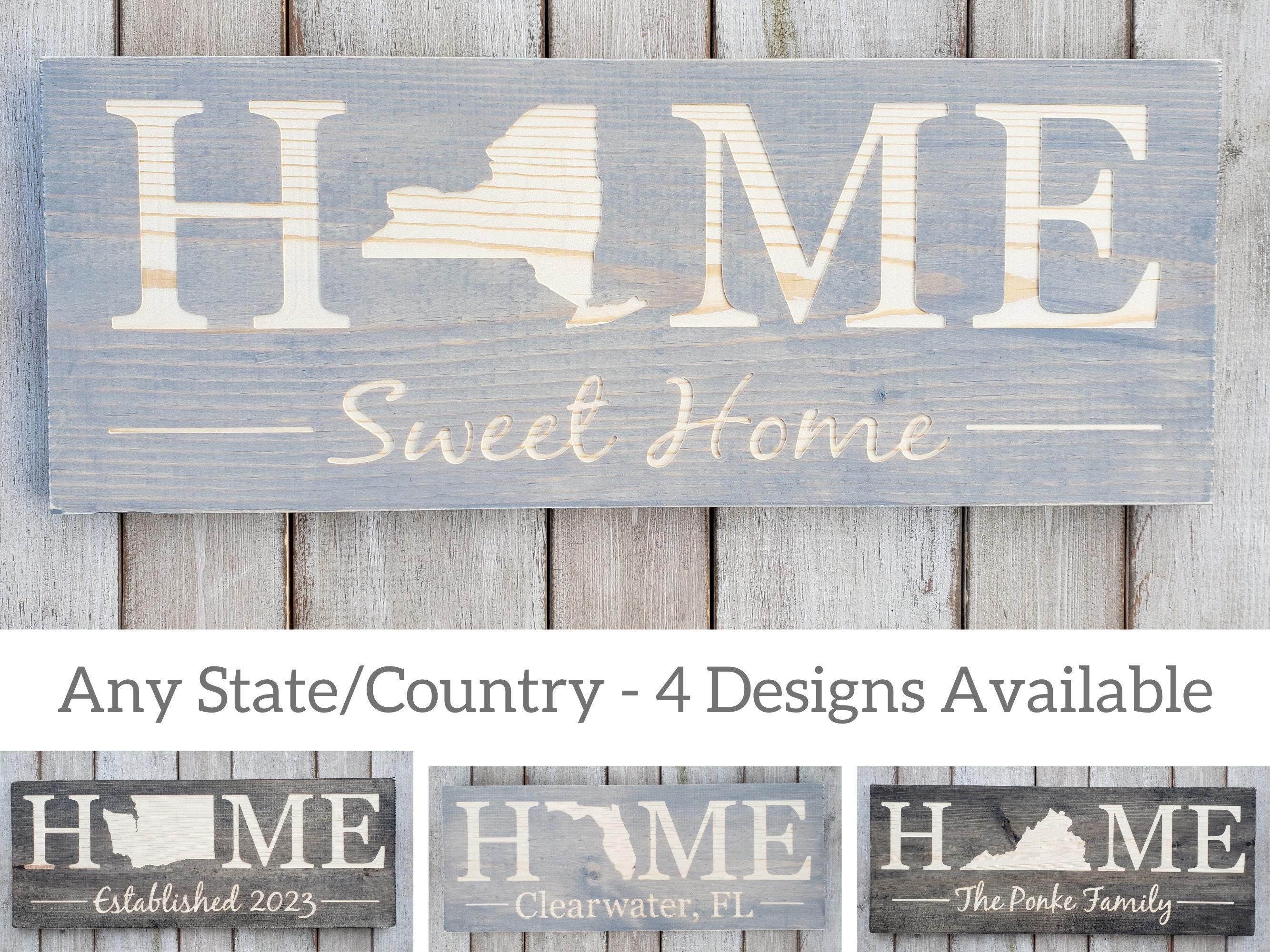 Where do you call home?!? Show off your state pride with our Home Sweet Home Sign. All 50 states are available along with 4 design options or a custom design of your choice!