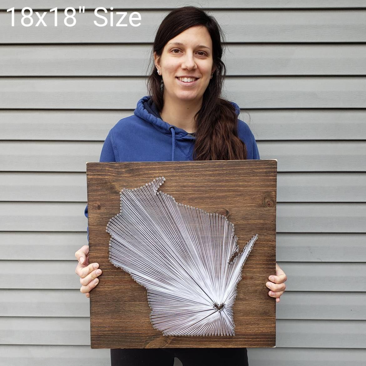 Celebrate your most cherished memories with this beautifully crafted Wisconsin string art, a unique addition to your Wisconsin decor collection. Each piece is thoughtfully handmade, blending rustic charm with personalized touches that make it a standout state string art gift. Whether you're looking for a heartfelt anniversary gift or a memorable home accent, this custom engraved sign captures the warmth and story of your special place.