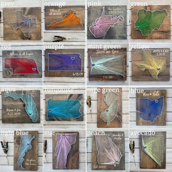 All pieces are crafted with attention to detail; note that wood boards may vary slightly due to their natural wood character. The back of the sign is left unstained as it will be out of sight when displayed. **Heart Locations on the border will be pulled away from the border so that they are completely surrounded by string --unless-- your heart location is in a tight area or requested otherwise. Heart is left open unless a request is made for it to be filled with another string color.