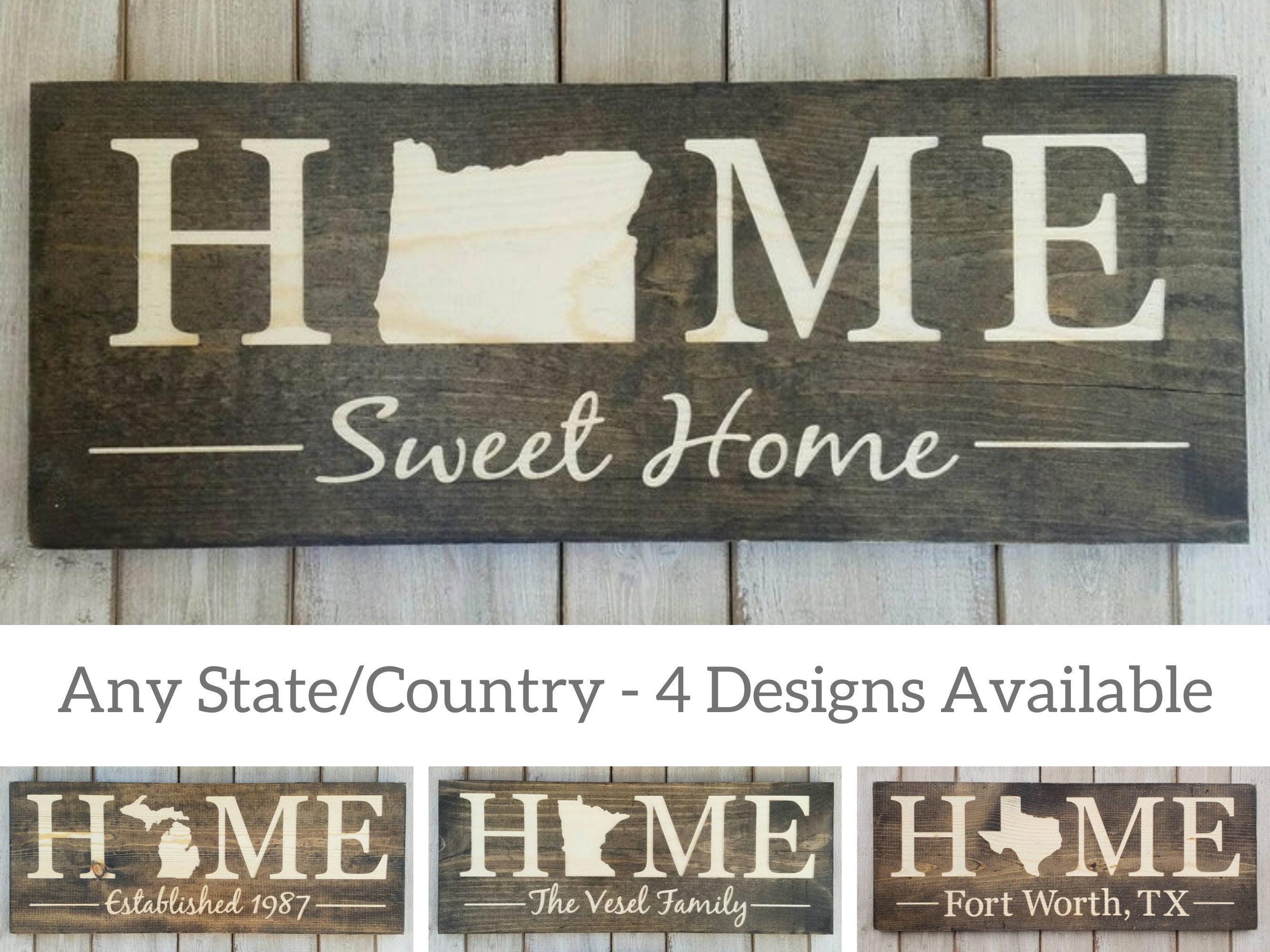 Where do you call home?!? Show off your state pride with our Home Sweet Home Sign. All 50 states are available along with 4 design options or a custom design of your choice!