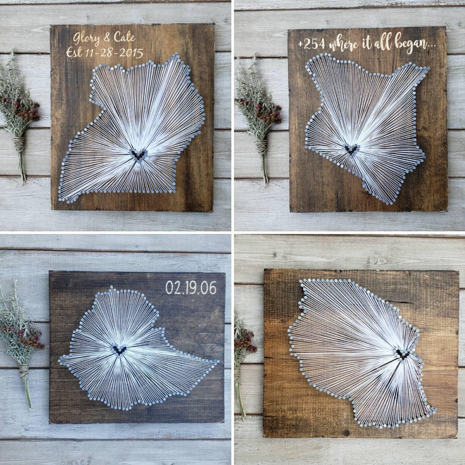 Our string art is the perfect piece of unique & meaningful home décor. The heart goes wherever you would like - where you met your sweetheart or got married, hometown, birthplace, college…the options are endless!