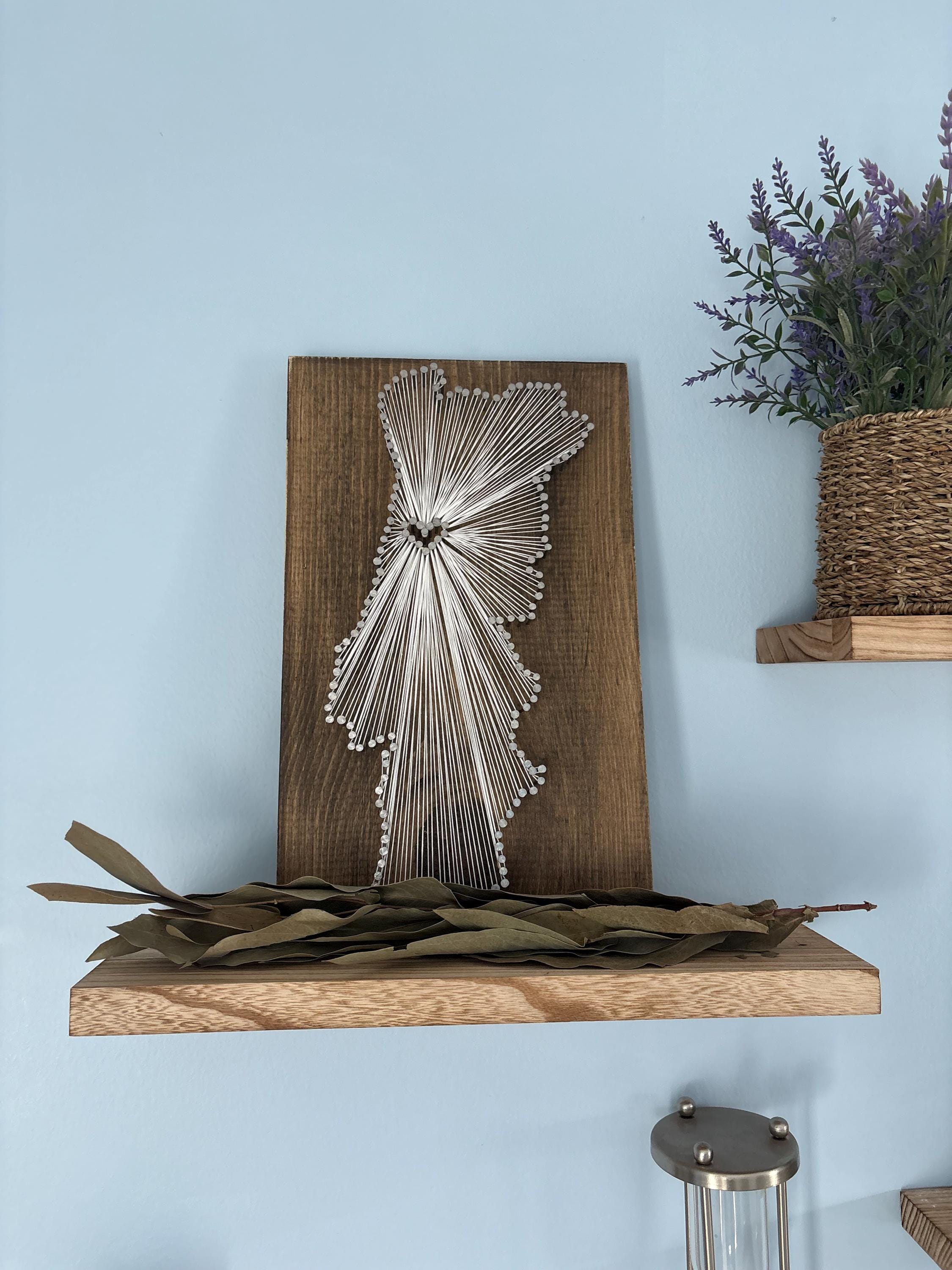 All pieces are crafted with attention to detail; note that wood boards may vary slightly due to their natural wood character. The back of the sign is left unstained as it will be out of sight when displayed. **Heart Locations on the border will be pulled away from the border so that they are completely surrounded by string --unless-- your heart location is in a tight area or requested otherwise. Heart is left open unless a request is made for it to be filled with another string color.