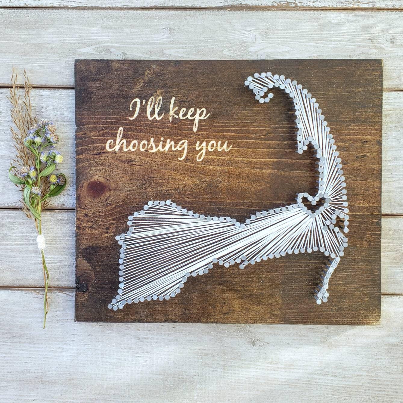 Celebrate your cherished memories with our handcrafted Cape Cod string art, a perfect blend of rustic decor and personalized charm. This unique piece captures special moments, making it an ideal gift for weddings or anniversaries, while beautifully showcasing the Cape Cod area. Designed as a custom state sign, it brings warmth and character to any space with its wooden wall sign appeal and delicate string art craftsmanship.