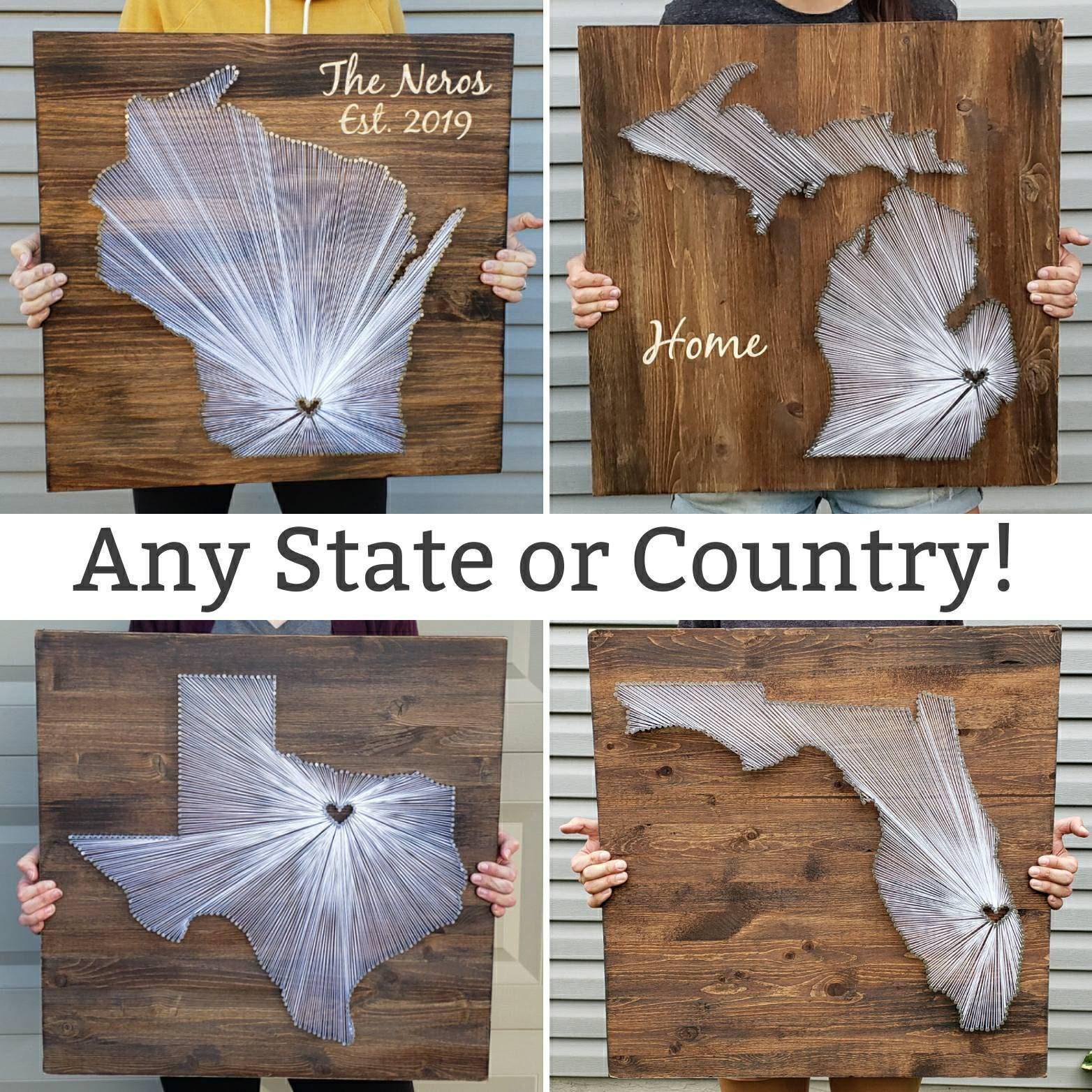 Our string art is the perfect piece of unique & meaningful home décor. The heart goes wherever you would like - where you met your sweetheart or got married, hometown, birthplace, college…the options are endless!