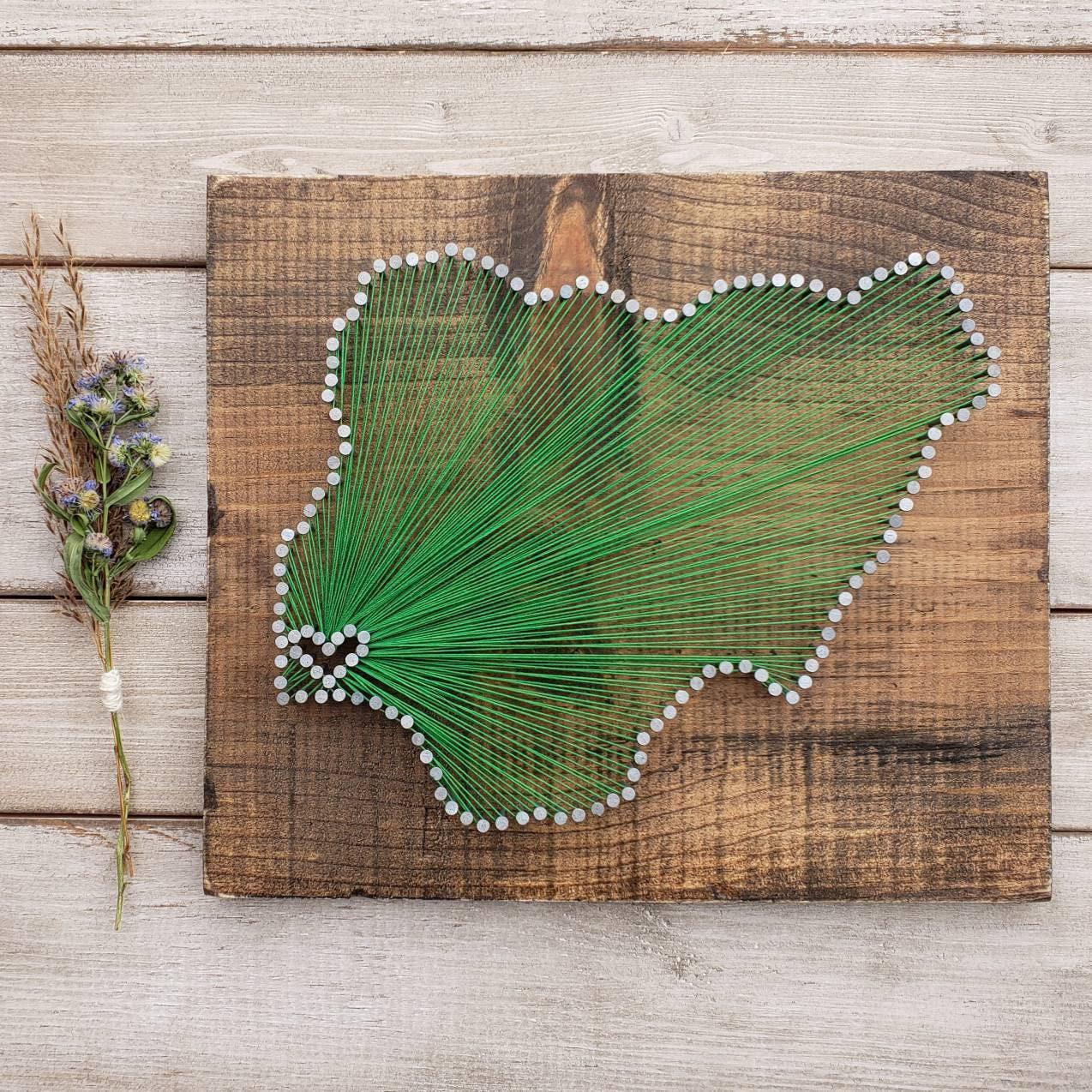 All pieces are crafted with attention to detail; note that wood boards may vary slightly due to their natural wood character. The back of the sign is left unstained as it will be out of sight when displayed. **Heart Locations on the border will be pulled away from the border so that they are completely surrounded by string --unless-- your heart location is in a tight area or requested otherwise. Heart is left open unless a request is made for it to be filled with another string color.